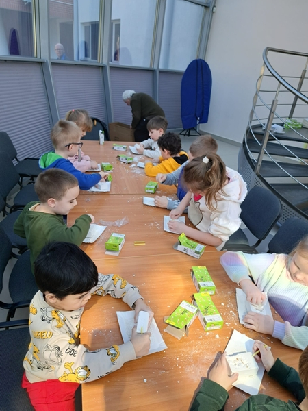 Na dzieci czekał mini koncert z piosenkami o dinozaurach – wśród nich radosny hit o dinozaurze Pimpusiu, który porwał wszystkich do wspólnej zabawy. Po muzycznej części przedszkolaki uczestniczyły w warsztatach: odciskały dinozaury w masie solnej, poszukiwały skamieniałości w bryle gipsu oraz poznały historię powstania JuraParku w Solcu Kujawskim.