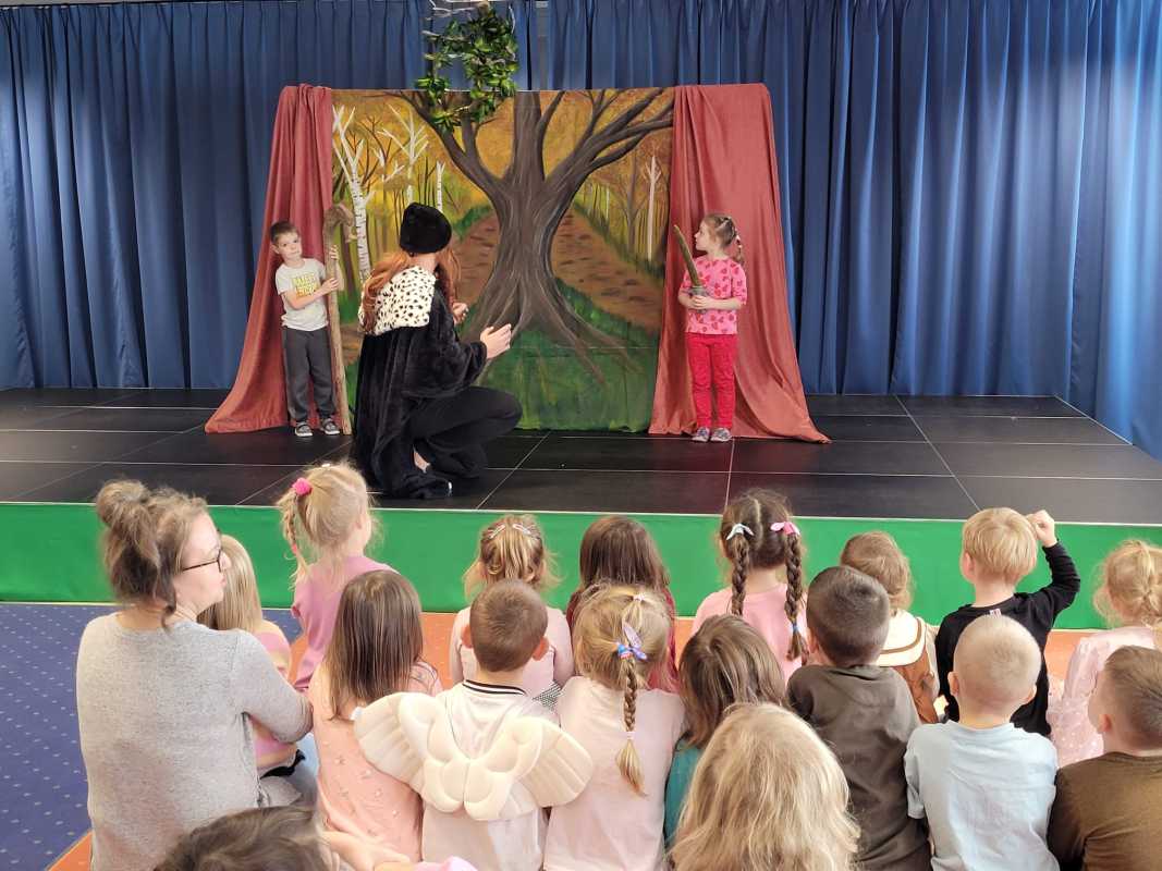 Dzieci lubią te cykliczne spotkania z teatrem i uważnie słuchają przekazu niesionego przez aktorów. Spektakl wzbogacony był o barwną scenografię i dynamiczną grę, która pomogła najmłodszym lepiej zrozumieć sens tej ważnej legendy.