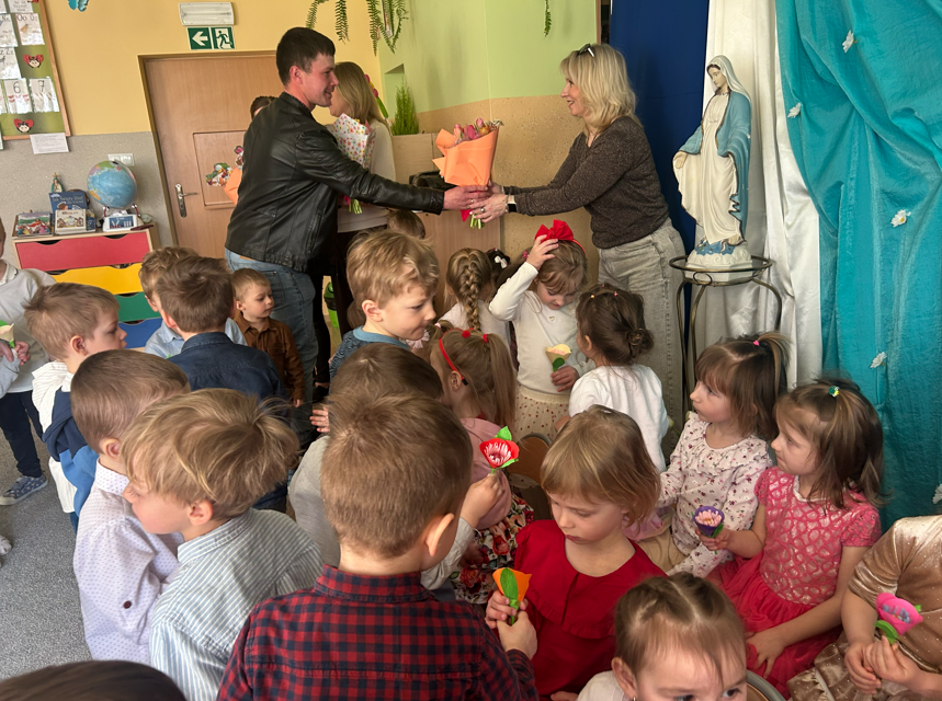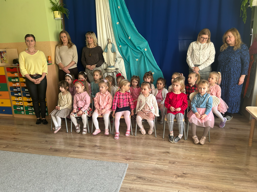 25 marca, w uroczystość Zwiastowania Najświętszej Maryi Pannie, świętowaliśmy w naszej Ochronce wyjątkowy Dzień Dziewczynek. Była to okazja, aby podkreślić, jak ważną rolę w życiu każdego człowieka odgrywa Maryja – wzór dobroci, pokory i troski o innych. Z tej okazji chłopcy przygotowali dla dziewczynek część artystyczną. Z wielkim zaangażowaniem recytowali wierszyki, zaśpiewali piosenkę oraz zaprosili dziewczynki do wspólnego tańca. Każdy chłopiec z uśmiechem poprosił wybraną dziewczynkę, a następnie wszyscy razem zatańczyli taniec, tworząc radosną i pełną serdeczności atmosferę. Na zakończenie chłopcy wręczyli dziewczynkom słodkie upominki jako wyraz sympatii i wdzięczności. Tego dnia odwiedzili nas również przedstawiciele tatusiów z naszej Ochronki, którzy skierowali serdeczne życzenia do Siostry i Pań pracujących w Ochronce oraz wręczyli piękne kwiaty. Był to dzień pełen uśmiechu, życzliwości i wspólnego świętowania