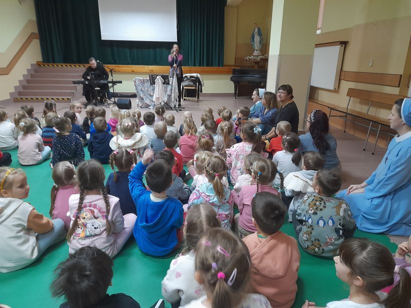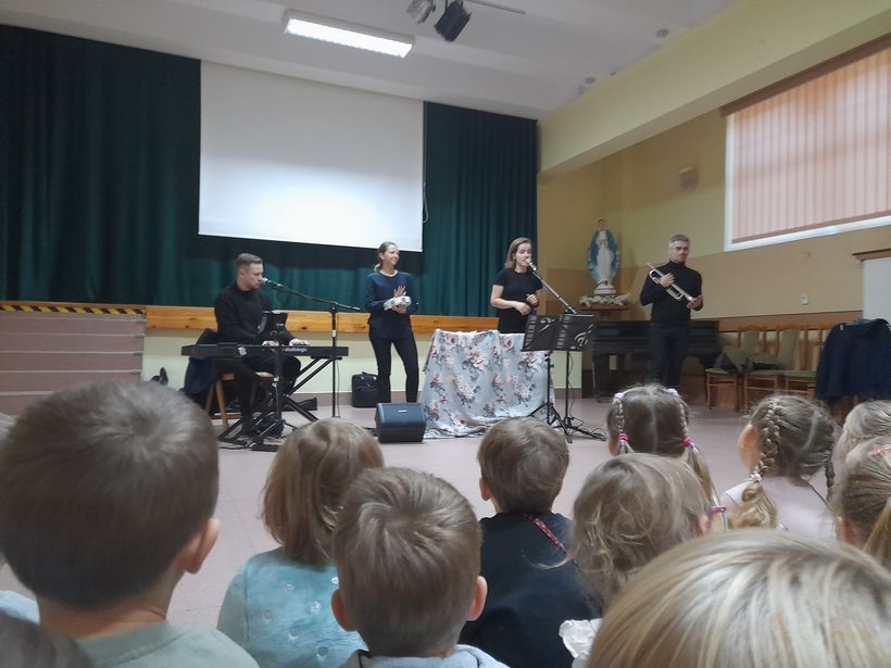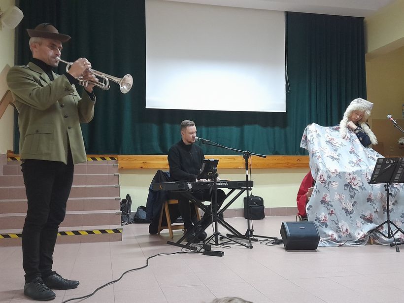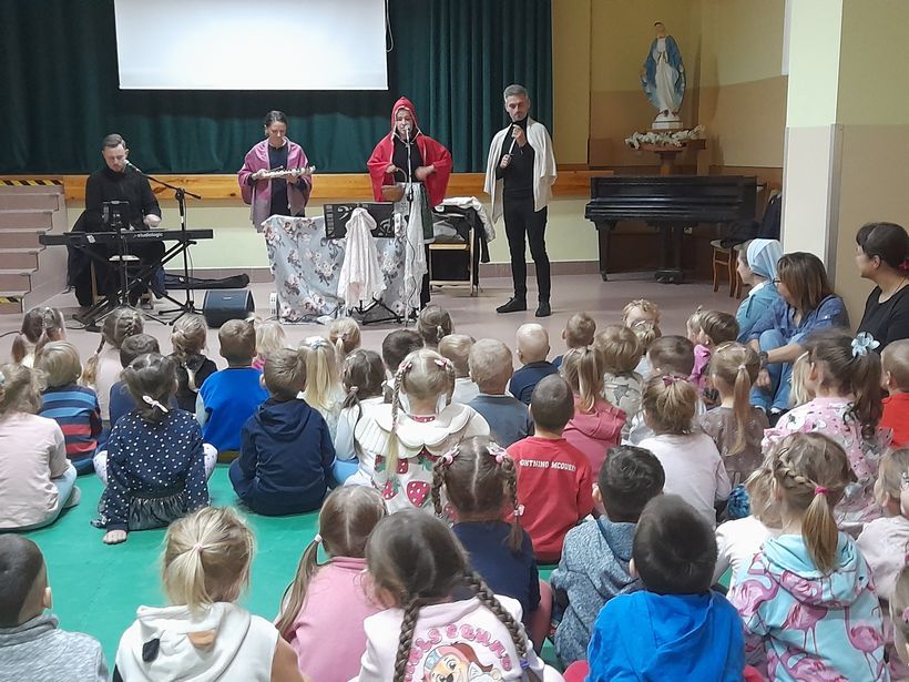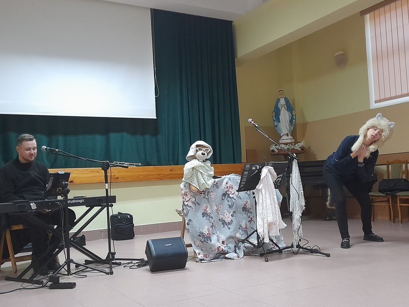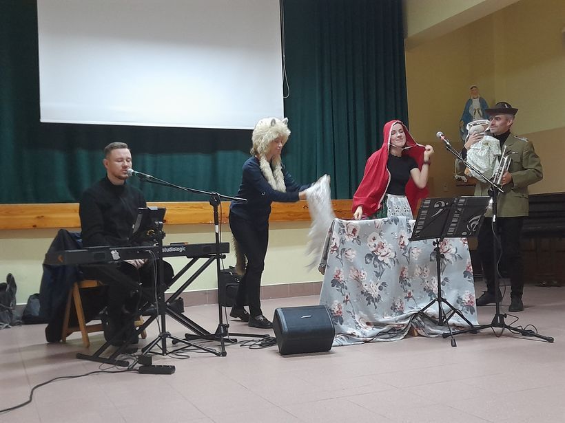 W czwartek 23 października 2025 roku, dzieci z naszej Ochronki uczestniczyły w niezwykłym spotkaniu z muzykami Filharmonii Podkarpackiej. Audycja muzyczna odbyła się pod hasłem „Bajki grajki i słuchowiska dla dzieci” i przeniosła najmłodszych w świat dźwięków, muzyki oraz bajkowych opowieści. Artyści przedstawili przedszkolakom muzyczną wersję znanej i lubianej bajki o „Czerwonym Kapturku”. Opowieść została zaprezentowana w formie słuchowiska z towarzyszeniem instrumentów muzycznych, dzięki czemu mali słuchacze mogli nie tylko posłuchać historii, ale także usłyszeć, jak muzyka potrafi oddać nastrój i emocje bohaterów. Dzieci z dużym zainteresowaniem słuchały występu, podziwiając piękne brzmienie instrumentów i sposób, w jaki muzyka potrafi opowiadać historię. To był niezwykle radosny i pełen muzycznych wrażeń dzień, który na pewno pozostanie w pamięci przedszkolaków.