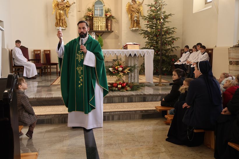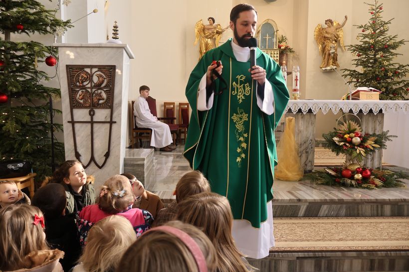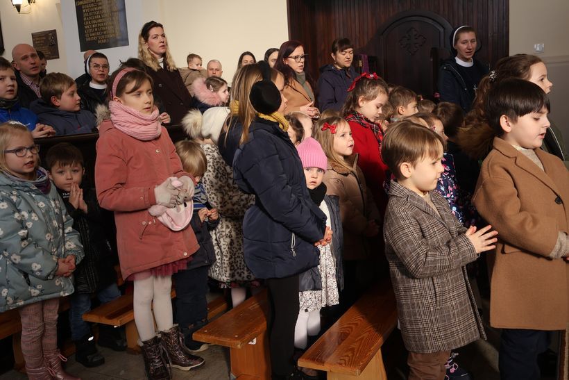 W niedzielę 25 stycznia 2026 roku, nasz kościół klasztorny wypełnił się wyjątkowymi gośćmi. Z okazji Dnia Babci i Dziadka została odprawiona Msza Święta, której przewodniczył o. Aleksander Ćwik CSsR. Podczas Eucharystii dzieci z naszej Ochronki dziękowały Dobremu Bogu za dar swoich Babć i Dziadków oraz prosiły o Boże błogosławieństwo dla nich. Nasze przedszkolaki przyniosły ze sobą nie tylko szczere modlitwy, ale i własnoręcznie zrobione kwiaty. Podczas liturgii dzieci aktywnie włączyły się w oprawę Mszy Świętej: procesję z darami oraz radosny śpiew kolęd, które wzruszyły naszych gości. Również Rodzice bardzo chętnie zaangażowali się w liturgię poprzez czytania, psalm, komentarz do darów oraz piękny śpiew. W krótkim słowie skierowanym do dzieci i dorosłych o. Aleksander podkreślił, jak ważną rolę odgrywają Dziadkowie w życiu każdego z nas. To Oni często są dla wnuków światłem, które daje im bezpieczeństwo i pokazuje jak wielką siłę ma miłość i dobroć. Dla wnuków była to lekcja wdzięczności, a dla Dziadków – dowód na to, że ich trud wychowawczy przynosi piękne owoce. Na zakończenie Mszy świętej przedszkolaki złożyły serdecznie życzenia i wręczyły swoim ukochanym Babciom i Dziadkom przygotowane przez siebie słodkie upominki. Było to spotkanie pełne modlitwy i wdzięczności, które pokazało, że wiara i miłość łączą pokolenia najmocniej. Wszystkim Babciom i Dziadkom życzymy Bożego błogosławieństwa na każdy dzień!