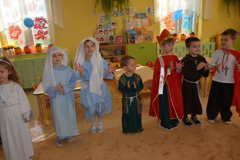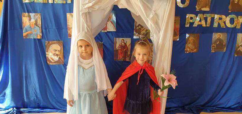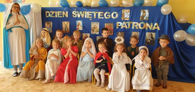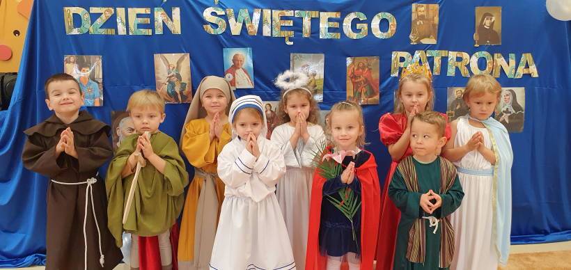 Przedszkolaki wspólnie z Rodzicami przygotowały stroje swoich patronów, poznając