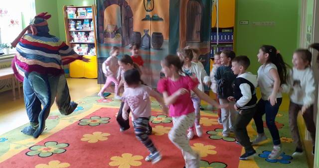 Teatr aktora KRAK-ART przyjechał ze znaną legendą o Bazyliszku. Aktorzy w humorystyczny sposób przedstawili warszawskiego potwora, który straszył w podziemiach. Przy okazji dzieci poznały dawne zawody, takie jak: snycerz, bednarz, płatnerz, kołodziej czy zdun. Jednak główną myślą aktorów było przypomnienie dzieciom odwiecznej prawdy: DZIECI POWINNY SŁUCHAĆ RODZICÓW, wtedy wszyscy są bezpieczni i nie spotykają strasznych Bazyliszków.