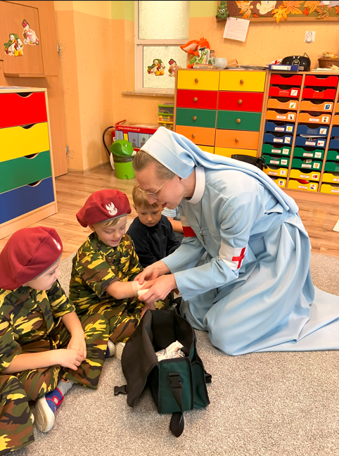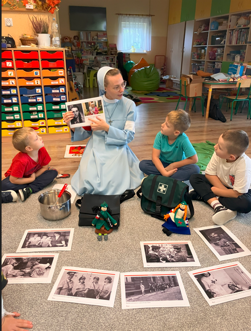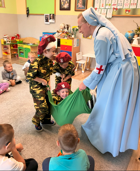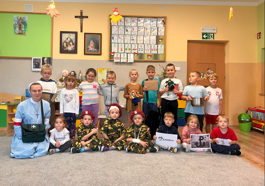 Dzieci z grupy najstarszej wzięły udział w zajęciach o kobietach uczestniczących w powstaniu warszawskim uczestnicząc w kolejnej edycji projektu BohaterON w twojej szkole. Przedszkolaki dowiedziały się jakie zadania miała sanitariuszka i łączniczka. Mimo niebezpieczeństwa, które było obecne w całej Warszawie, młode dziewczęta nie bały się i śpieszyły z pomocą medyczną i listami, wykazując się odwagą i determinacją. Dzięki takiemu projektowi bliższa staje się historia naszej Ojczyzny, a dzieci dowiadują się wielu ciekawostek o Polsce i kształtują postawy patriotyczne.