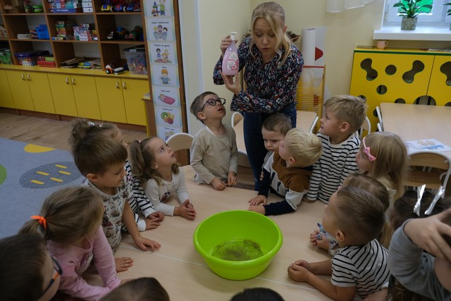 W warsztatowych zajęciach praktycznych nasze maluszki uczyły się jak ważna jest troska o higienę osobistą i prawidłowe nawyki higieniczne. W sali powstał z tej okazji kącik czystości, który towarzyszyć będzie dzieciom przez cały miesiąc.