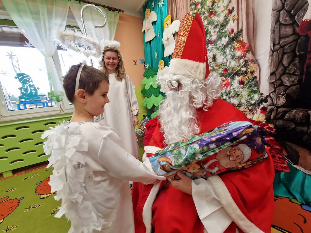 Dzieci z niecierpliwością czekały na przybycie Mikołaja, a kiedy wreszcie się pojawił, radość była ogromna. Dzieci zaprezentowały Św. Mikołajowi specjalnie przygotowane piosenki i wierszyki, a w zamian otrzymały upragnione prezenty. Wizyta Mikołaja w Ochronce to już piękna, lokalna tradycja, która co roku wprowadza wszystkich w cudowny, świąteczny nastrój. To był dzień pełen pozytywnych emocji i niezapomnianych chwil dla wszystkich małych „Ochronkowiczów”.