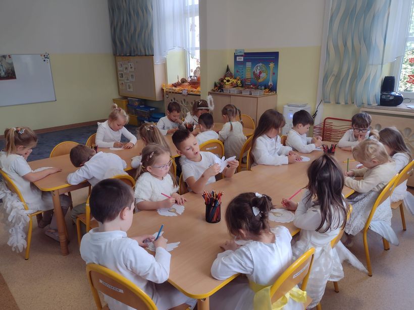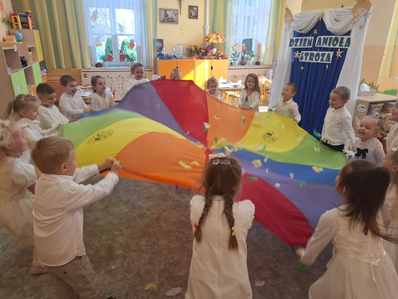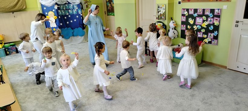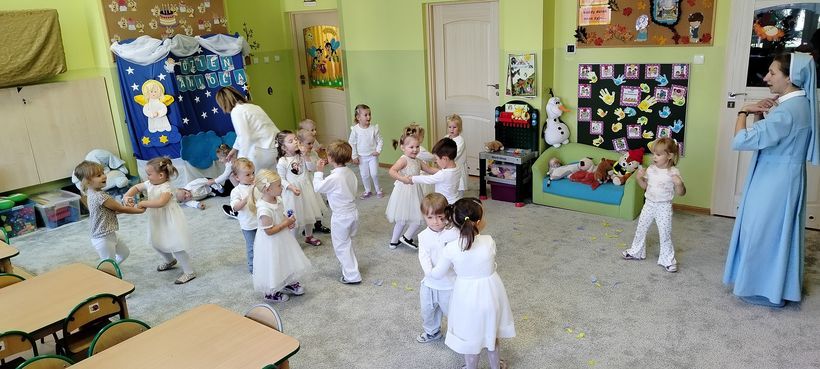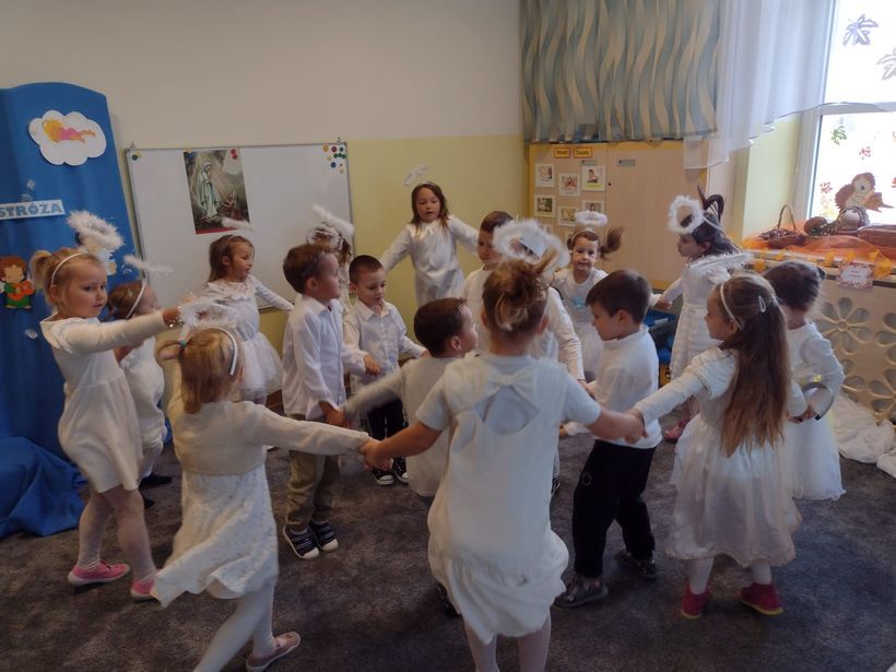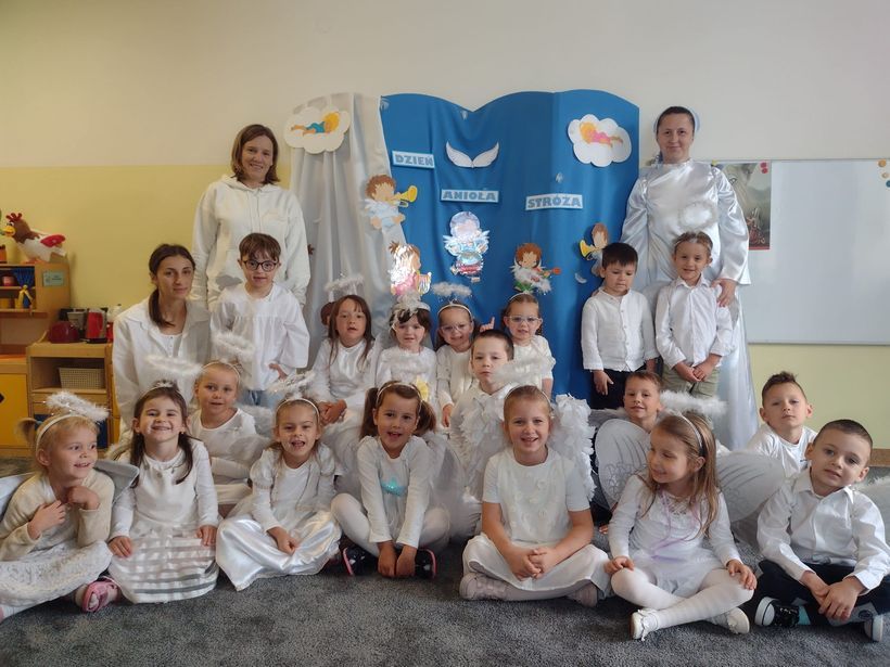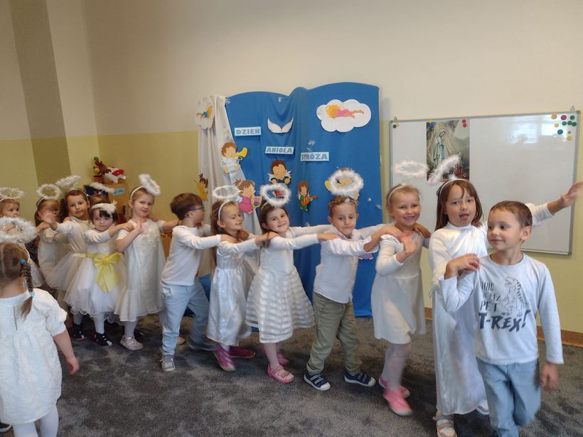 2 października w naszej Ochronce, jak co roku, uroczyście świętowaliśmy Dzień Anioła Stróża. O naszym Przyjacielu dzieci pamiętają przez cały rok (szczególnie we wtorki przypominamy sobie o jego troskliwej obecności w naszym życiu), jednak to właśnie dziś uczciliśmy naszych Anielskich Opiekunów w sposób szczególny. Świętowanie rozpoczęliśmy od wspólnej modlitwy w kościele przed Najświętszym Sakramentem. Ubrani w białe stroje, skrzydła i aureole podziękowaliśmy Panu Bogu za naszych Aniołów Stróżów i prosiliśmy Go o ich opiekę nad nami oraz naszymi rodzinami. Następnie spędziliśmy ten dzień bawiąc się, tańcząc i śpiewając angielskie piosenki. O godzinie 11 wszyscy spotkaliśmy się w sali “Motylków”, aby raz jeszcze wspólnie pośpiewać przy dźwiękach gitary i zostać obdarowanym słodkim, anielskim upominkiem. Ten dzień był wyjątkowo Anielski. 🙂