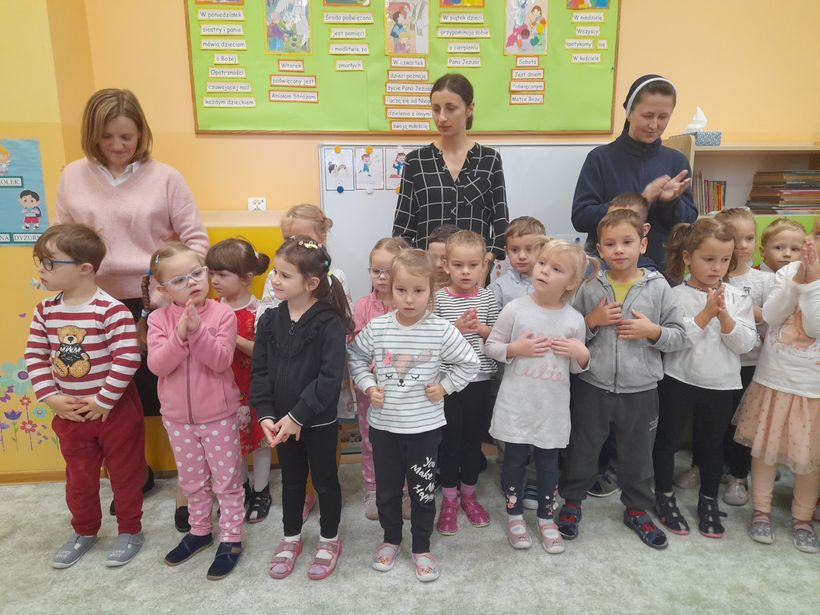 Dnia 14 października spotkaliśmy się w naszym kościele klasztornym, aby wspólnie podziękować Panu Bogu za wszystkich nauczycieli oraz tych, którzy codziennie troszczą się o najmłodszych. Po modlitwie udaliśmy się do sali „Motylków”, gdzie czekali już przedstawiciele Rady Rodziców, którzy w imieniu wszystkich rodziców wyrazili wdzięczność Siostrom, Paniom i Panom za troskę i trud wychowania. Siostra Dyrektor podziękowała Rodzicom za zaufanie, którym obdarzają nas przysyłając swoje dzieci do Ochronki. Na koniec przedszkolaki wręczyły drobne upominki oraz ze wszystkich sił zaśpiewały piosenkę, która była dla wszystkich najpiękniejszym prezentem płynącym prosto z dziecięcych serc. Nie zabrakło również słodkości dla naszych przedszkolaków.