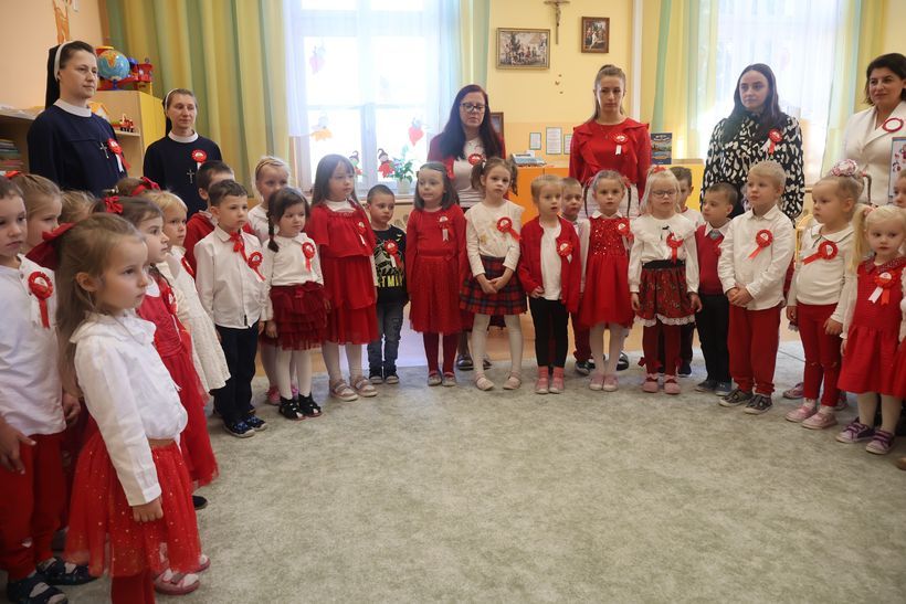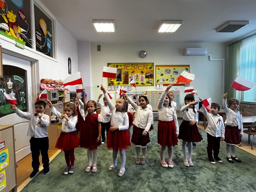 W piątek, 7 listopada 2025 roku, w naszej Ochronce obchodziliśmy Dzień Małego Polaka. Był to dzień wyjątkowy i pełen wspaniałych przeżyć. Od samego rana cała wspólnota ochronki świętowała to ważne dla każdego Polaka wydarzenie. Wszystkie dzieci przyszły ubrane w biało-czerwone barwy, tworząc przepiękne morze narodowych kolorów. W ten dzień, mieliśmy zaszczyt gościć Pana Tomasza Czaplę, Dyrektora Muzeum Regionalnego w Dębicy, który poprowadził dla przedszkolaków niezwykle ciekawe zajęcia pt. „Mały Patriota”. Pan Tomasz w sposób wyjątkowy i dostosowany do wieku dzieci opowiedział o historii rozbiorów Polski oraz drodze do odzyskania niepodległości. Wykorzystał przy tym przykłady mieszkańców lasu, co sprawiło, że opowieść stała się dla dzieci bardziej zrozumiała, atrakcyjna i łatwa do zapamiętania. Dzięki zajęciom, najmłodsi mogli pogłębić swoją wiedzę i jeszcze bardziej poczuć dumę z bycia Polakami. Punktualnie o 11:11 cała Ochronka włączyła się w ogólnopolską akcję „Szkoła do hymnu”. W podniosłej atmosferze, z powagą i wzruszeniem wspólnie odśpiewaliśmy „Mazurek Dąbrowskiego”. To był wyjątkowy moment, który połączył nas wszystkich we wspólnym przeżywaniu radości z tego, że żyjemy w wolnej Polsce.