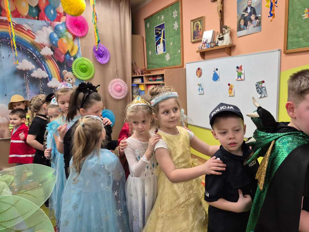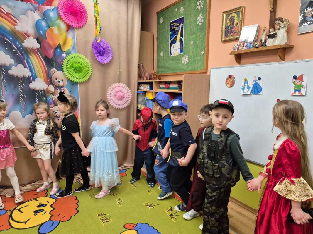 W naszej Ochronce odbył się długo wyczekiwany bal karnawałowy. Tego dnia sala zamieniła się w barwną, radosną krainę pełną księżniczek, rycerzy, zwierzątek, bohaterów bajek i wielu innych niezwykłych postaci. Dzieci zachwyciły pomysłowością i różnorodnością swoich strojów – każdy kostium był wyjątkowy i przygotowany z wielką starannością. Nie zabrakło wspólnych tańców, zabaw, konkursów i uśmiechu od ucha do ucha. Atmosfera była pełna entuzjazmu, spontanicznej radości i dziecięcej energii. Z całego serca dziękujemy Rodzicom za zaangażowanie i przygotowanie pięknych strojów, Siostrom oraz Paniom za organizację i czuwanie nad przebiegiem balu. Dzięki wspólnemu wysiłkowi mogliśmy przeżyć wspaniały dzień, który na długo pozostanie w pamięci dzieci i z większym zaangażowaniem przeżyć zbliżający się czas Wielkiego Postu. To był prawdziwie radosny czas wspólnej zabawy! s. Justyna Marzec