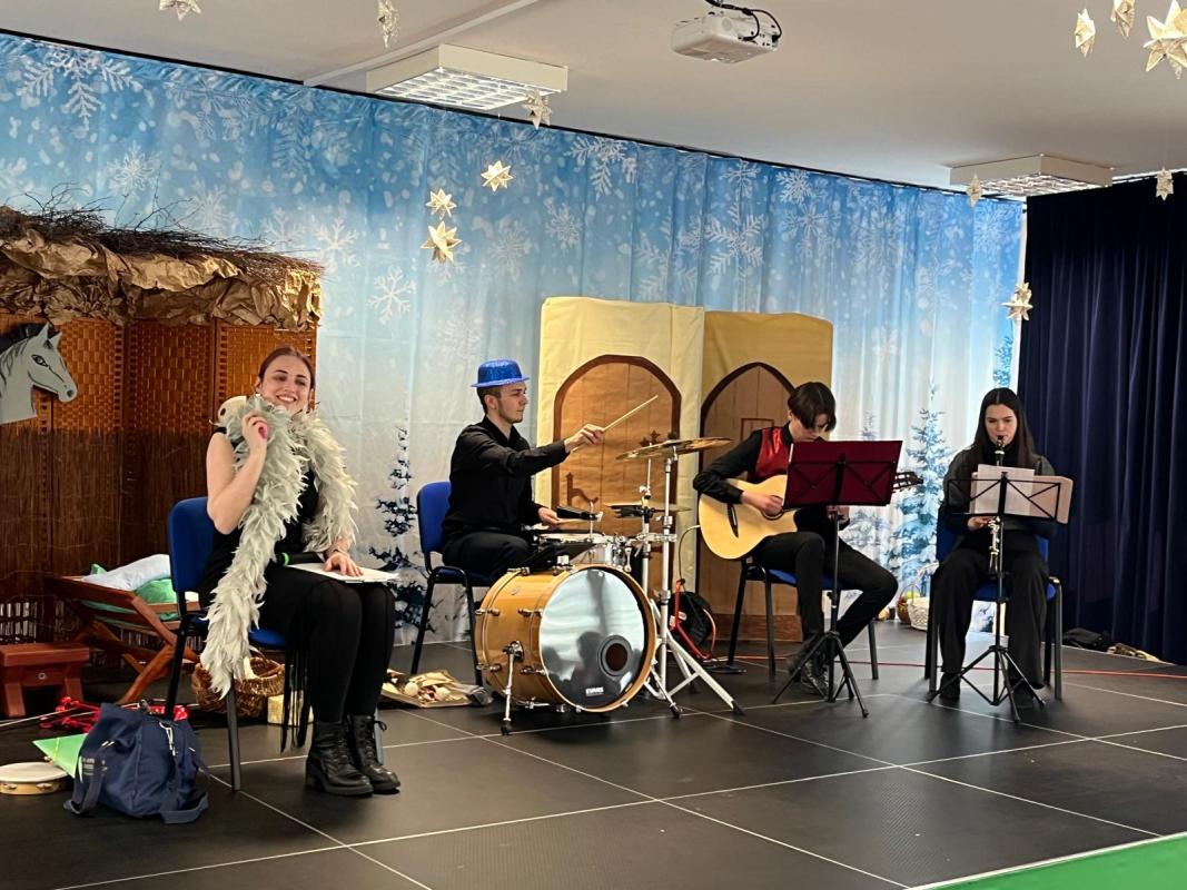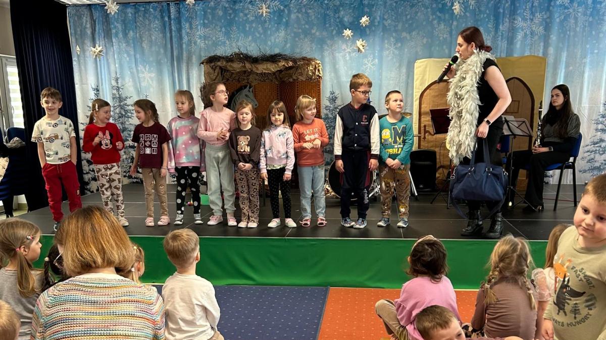 Podczas koncertu poznaliśmy pełne pasji rytmiczne tańce karnawałowe – sambę, tango, salsę, czaczę i rumbę – które rozbrzmiewały dzięki dźwiękom gitary, perkusji i klarnetu. Dzieci nie tylko wsłuchiwały się w gorące melodie, ale też mogły spróbować gry na różnych instrumentach, co zawsze sprawia im ogromną radość!
