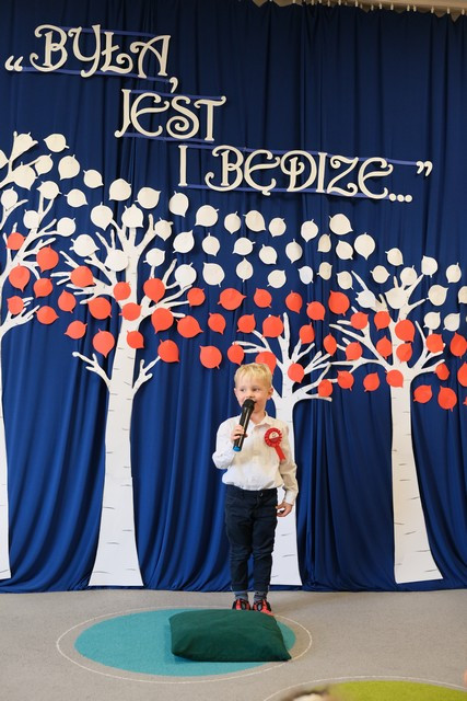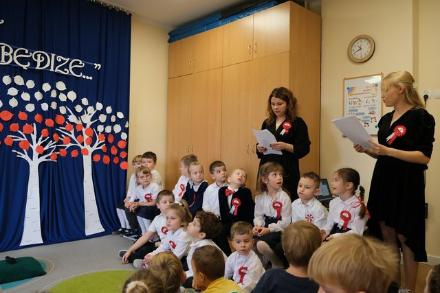 W scenerii patriotycznej, w bliskości daty kolejnej rocznicy Odzyskania Niepodległości przez Polskę, przeżywaliśmy nasz wewnątrzprzedszkolny konkurs wokalno-recytatorski „Moja Ojczyzna w wierszu i piosence”. Dzieci zaprezentowały się na bardzo wysokim poziomie, prezentując swoje umiejętności i talenty. Towarzyszyło nam mnóstwo wzruszeń podczas odbioru poszczególnych występów, a Jury stanęło przed trudnym wyzwaniem wyłonienia laureatów.