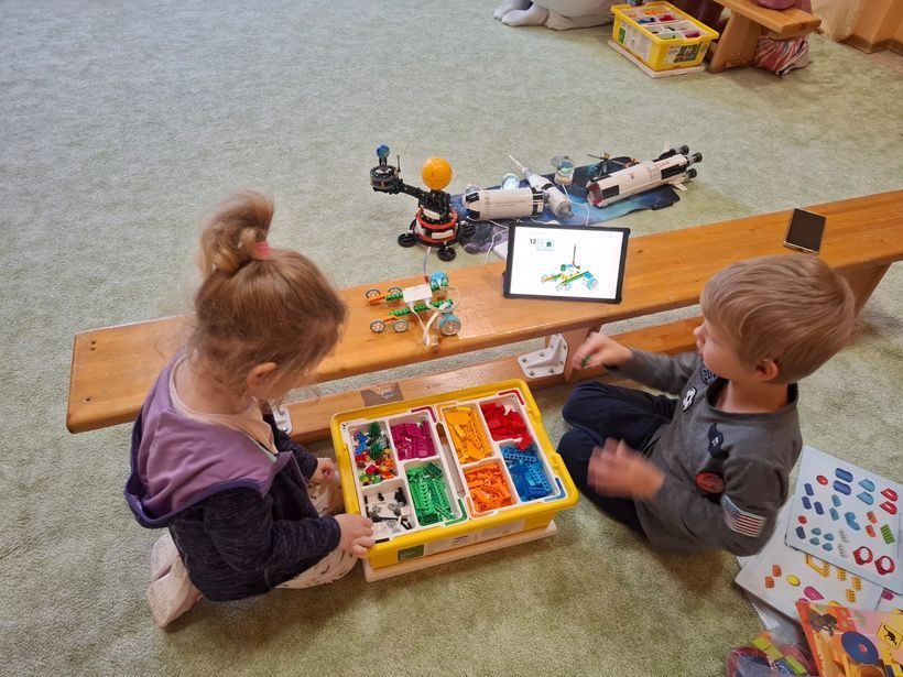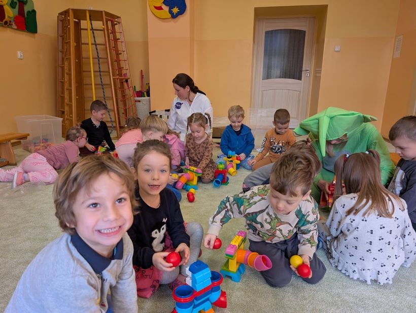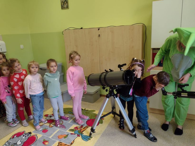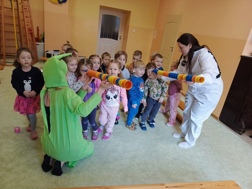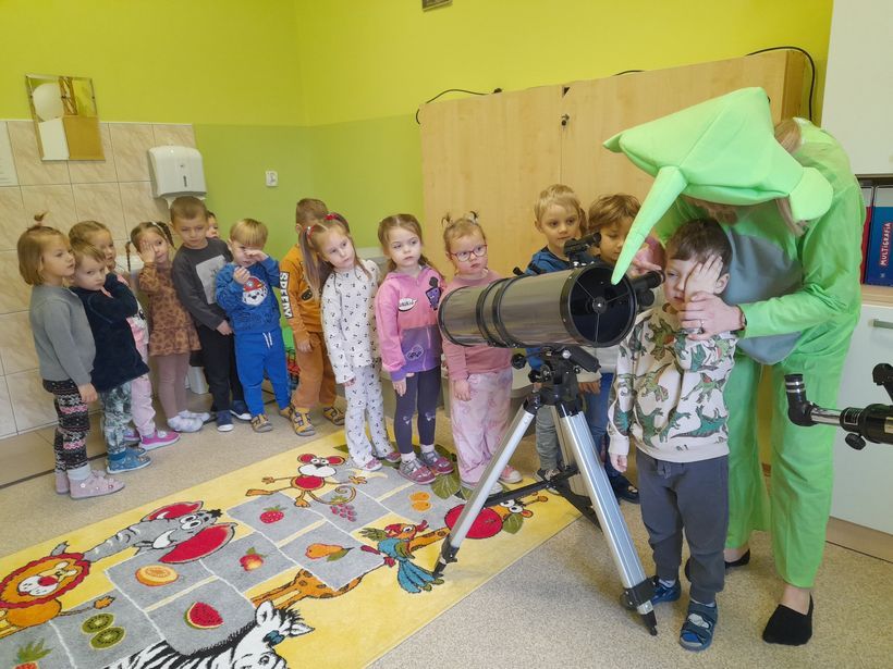 Dnia 16 grudnia w naszej Ochronce już po raz drugi odbyły się zajęcia z robotyki prowadzone przez firmę RjakRobot. Tym razem tematem przewodnim był Kosmos. Przedszkolaki bardzo aktywnie uczestniczyły w warsztatach. Na początku zajęć Panie opowiadały ciekawostki o Kosmosie i planetach, następnie młodsze dzieci budowały kosmiczny tor z kulami. Sprawiło to im dużo radości. Starszaki konstruowały łaziki. Nad wszystkim czuwały Panie, które służyły swoją pomocą i radą. Dzieci miały okazję nie tylko poszerzyć swoje zainteresowania tworząc wspaniałe konstrukcje, ale również rozwinąć kompetencje społeczne, ucząc się pracy w grupie. Na zakończenie zajęć każde dziecko mogło obserwować niebo przez teleskop. Przedszkolaki otrzymały również pamiątki, które zachęcają do zdobywania wiedzy na temat Kosmosu.