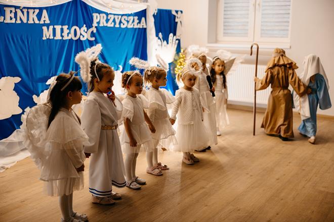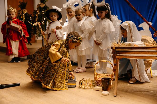 Jasełka to jedna z tradycji naszej Ochronki. To spotkanie pełne radości, ciepła oraz serdecznych relacji między sobą i najbliższymi. I w tym roku o taką świąteczną atmosferę zadbały nasze przedszkolaki, które 20 stycznia przedstawiły Jasełka dla swoich Babć, Dziadków i Rodziców. Aktorzy znakomicie odegrali rolę Józefa, Maryi, Aniołów i Pasterzy oznajmiających wszystkim radosną nowinę o narodzeniu Jezusa, a także Trzech Króli, którzy przybyli złożyć pokłon Panu. Dopełnieniem Jasełek były piękne życzenia dla Babci i Dziadka z okazji Ich święta wyrażone wierszem i piosenką oraz słodki poczęstunek. Spotkanie upłynęło w rodzinnej atmosferze, a każdy wrócił do domu pamiętając, że „Maleńka przyszła Miłość…”. s. Jadwiga