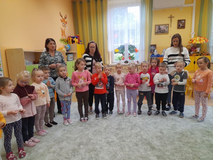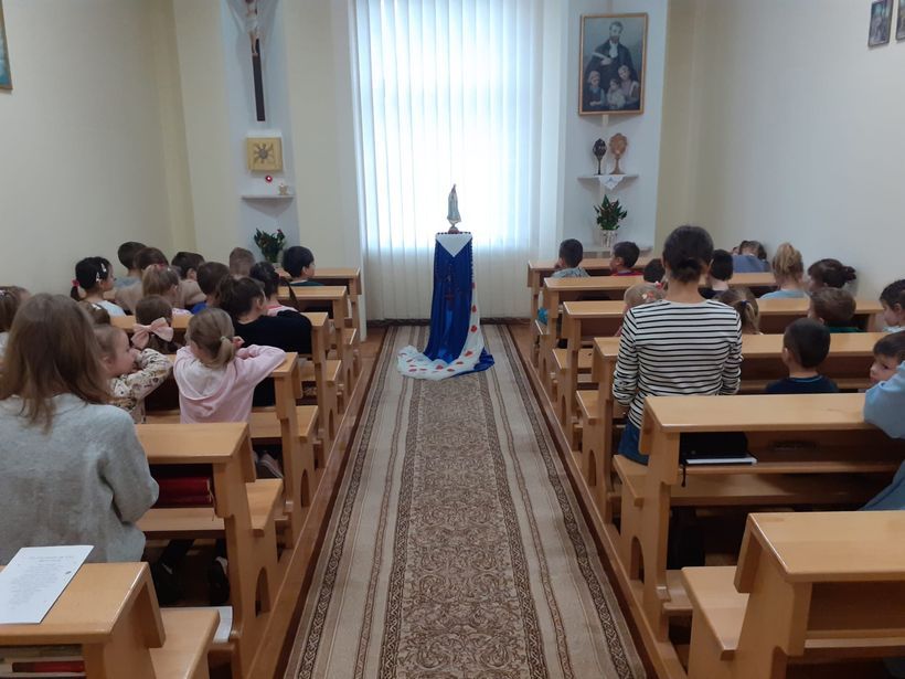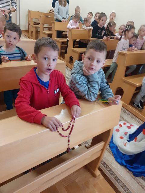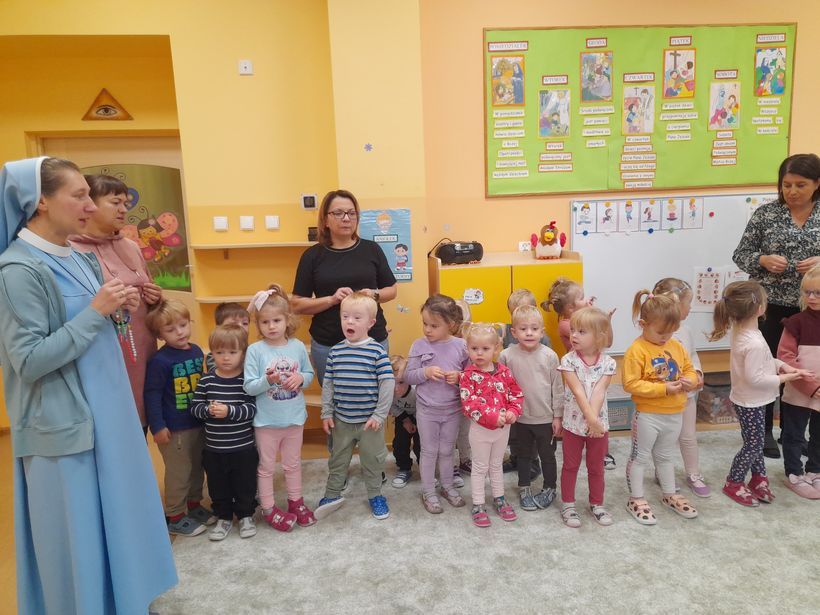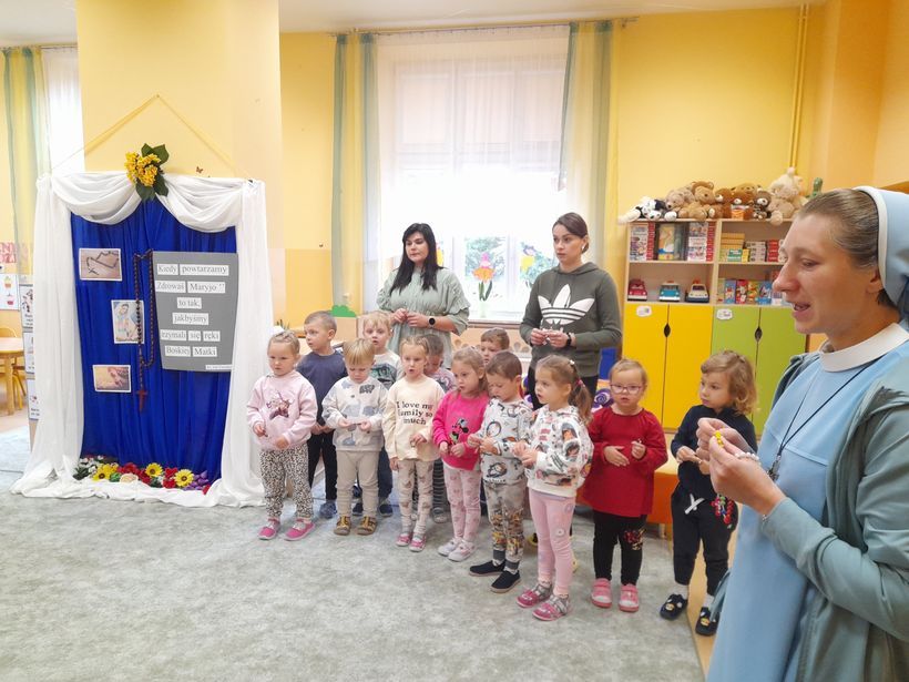 Dlatego 7 października, w święto Matki Bożej Różańcowej, siostry, panie oraz dzieci z naszej Ochronki dołączyły do międzynarodowej modlitwy o jedność i pokój „Milion dzieci modli się na różańcu”. O godzinie 9.00 zebraliśmy się w dwóch miejscach: dzieci z grup starszych w naszym domowym Oratorium, a dzieci z grup młodszych w sali grupy „Motylki”. Starszaki odmówiły chwalebną część różańca, młodsze dzieci zaś tajemnicę Zmartwychwstania Pana Jezusa. Łącząc się we wspólnej modlitwie z wielkim zaangażowaniem, skupieniem i prostotą serca dzieci prosiliśmy Maryję, o pokój na całym świecie, w naszym kraju, w każdej rodzinie oraz w każdym ludzkim sercu. Wspólne odmawianie różańca było pięknym świadectwem wiary i jedności, która budzi nadzieję. W ten sposób nasza Ochronka dołączyła do ogromnej wspólnoty modlitewnej rozsianej po całym świecie, tworząc duchowy łańcuch dobra i pokoju.