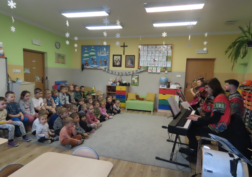 3 grudnia naszą Ochronkę odwiedziła Mobilna Filharmonia, która przygotowała dla dzieci koncert pt. „Rytmy słońca i samby”. Muzycy zabrali przedszkolaki w muzyczną podróż po Afryce i Ameryce Południowej.