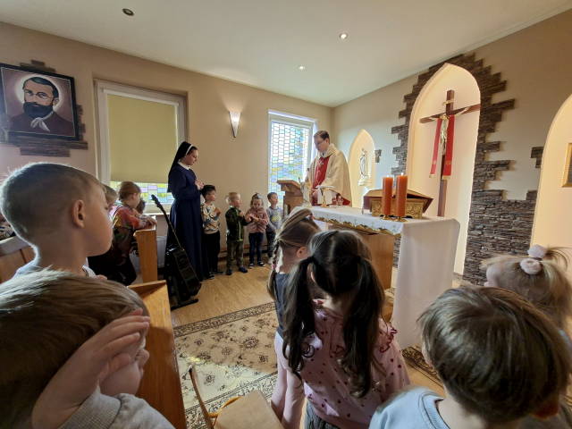 W piątkowy poranek spotkaliśmy się na wspólnej Mszy Świętej w naszej Kaplicy, jak każdego miesiąca. Mszy Świętej przewodniczył ks. Dawid Majda- Filipin. Nasze przedszkolaki wraz z rodzicami, siostrami i paniami modliły się za naszą Ojczyznę. Już blisko uroczystość Najświętszej Maryi Panny, która jest główną patronką Polski. Święto ma charakter maryjny i patriotyczny, upamiętnia śluby króla Jana Kazimierza oraz Konstytucję 3 Maja. My już dziś w naszej Ochronce pragnęliśmy zaznaczyć naszą pamięć i troskę o Ojczyznę.