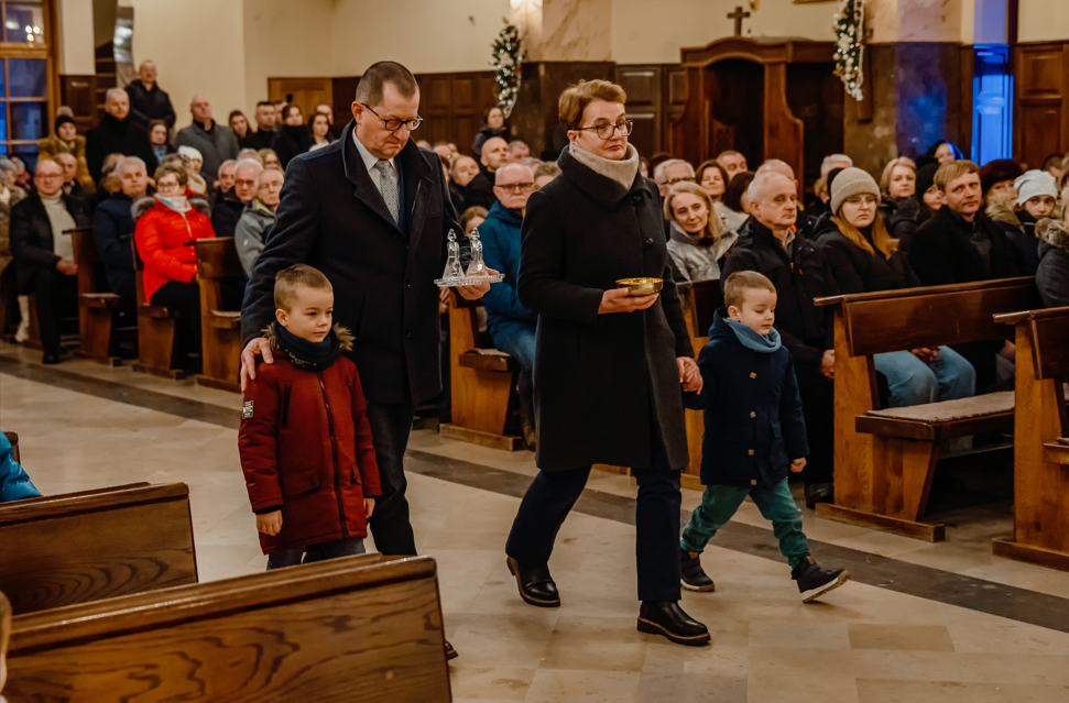 Mszy Świętej przewodniczył ksiądz Proboszcz. Liturgia miała wyjątkowo wspólnotowy charakter. Rodzice i dziadkowie aktywnie włączyli się w jej przebieg, podejmując posługę czytania Słowa Bożego, a dziadkowie wraz z wnukami nieśli do ołtarza dary ofiarne.