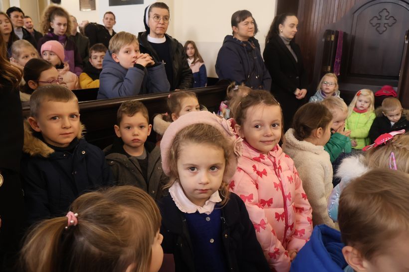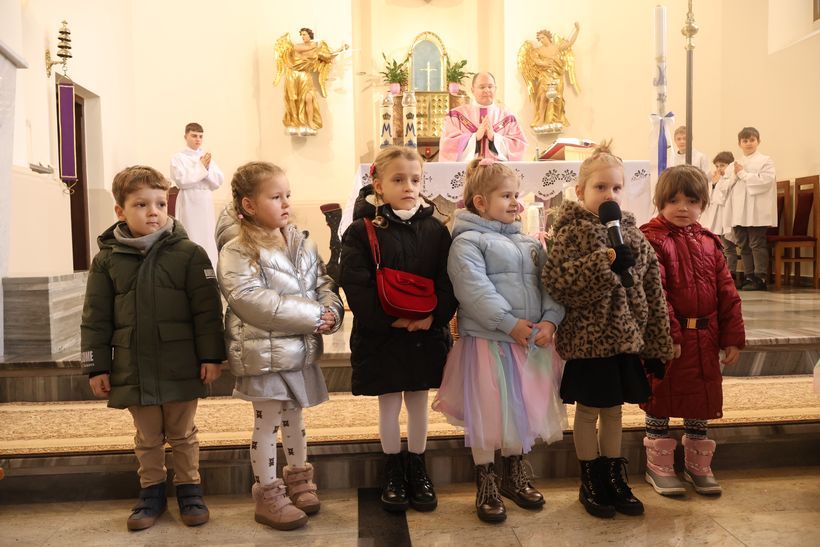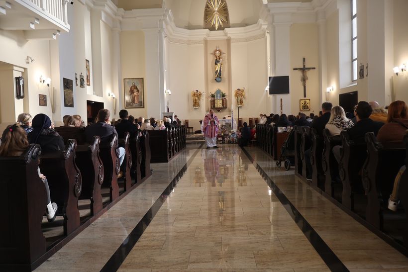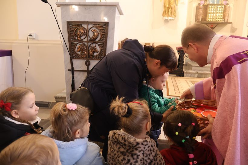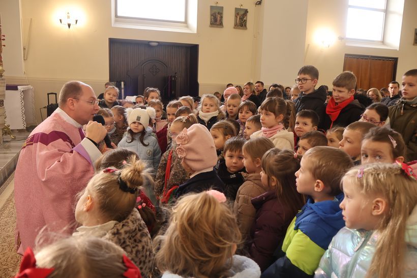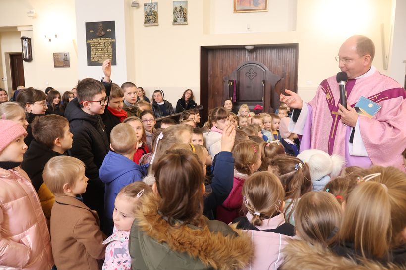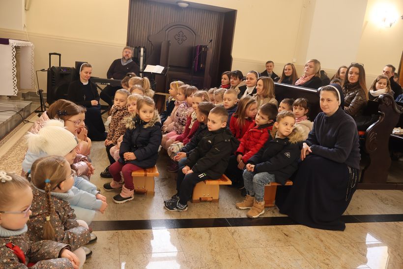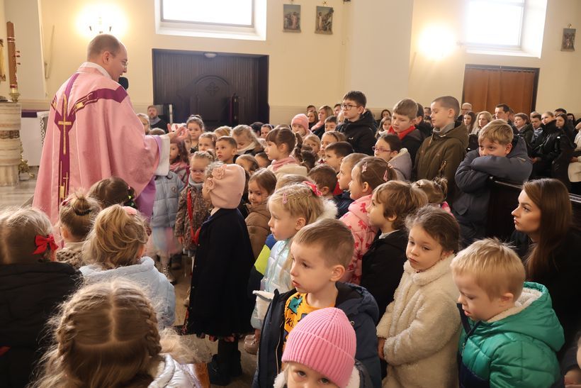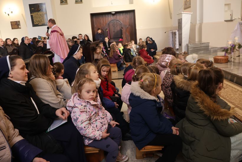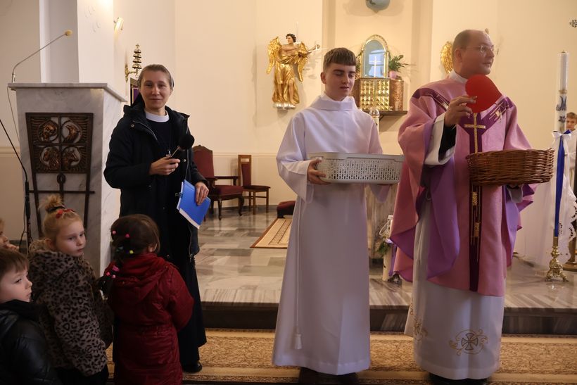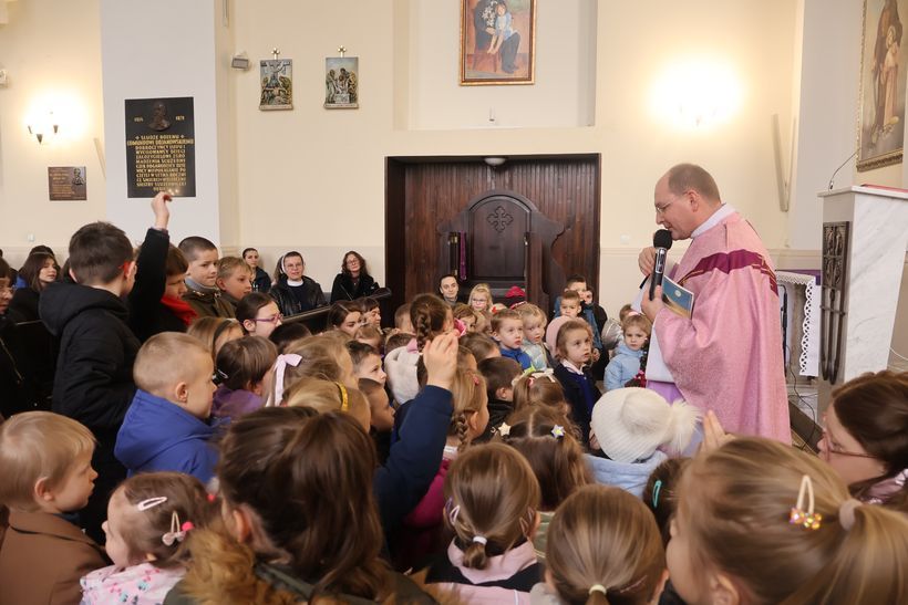 W III Niedzielę Adwentu – Niedzielę Gaudete Ochronkową Wspólnotą spotkaliśmy się w naszym kościele klasztornym na uroczystej Eucharystii. Był to czas wspólnej modlitwy przygotowującej nasze serca na nadchodzące Święta Bożego Narodzenia. Mszy Świętej przewodniczył ks. Marcin Gryzło z radia RDN. W słowie skierowanym zarówno do dzieci jaki i do dorosłych Ks. Marcin zwrócił uwagę na to jak ważne jest docenianie małych gestów dobroci, które otrzymujemy każdego dnia. Przypomniał nam, że prawdziwa radość rodzi się z wdzięczności za to co już mamy! Ks. Marcin zachęcał, byśmy zrezygnowali z narzekania, a pamiętali o pielęgnowaniu w rodzinach wzajemnej życzliwości. Na koniec odbyło się wylosowanie 10 przygotowanych przez dzieci serduszek z dobrymi uczynkami. Szczęśliwcy zabrali do domów Dzieciątka Jezus, które ozdobią wigilijne stoły. Za przygotowanie liturgii podczas Mszy Świętej odpowiedzialna była gr. „Biedronki”. Jak co miesiąc w modlitwie pomogła nam również Schola Rodziców. Dziękujemy wszystkim za tak liczne uczestnictwo w Eucharystii!
