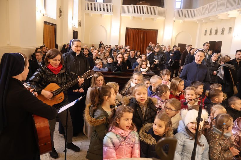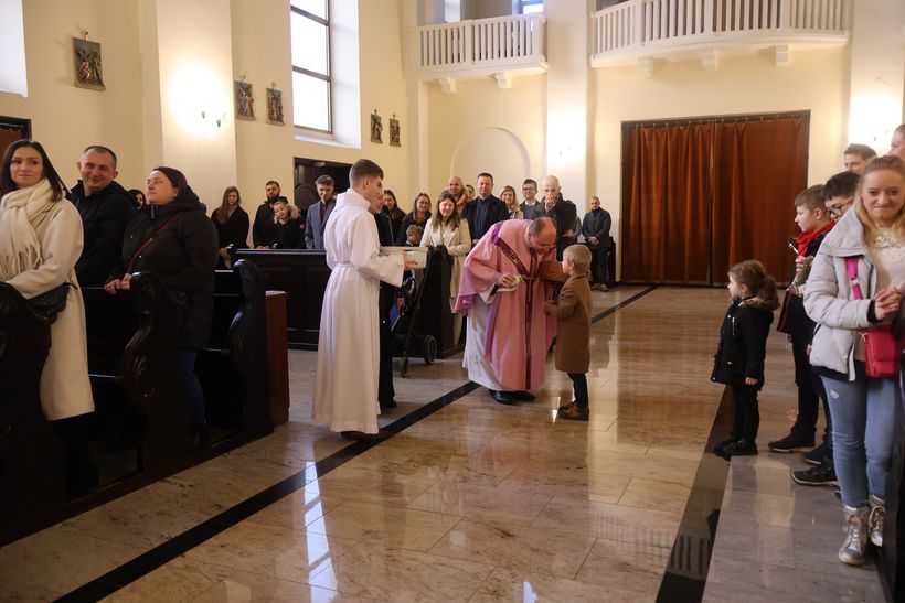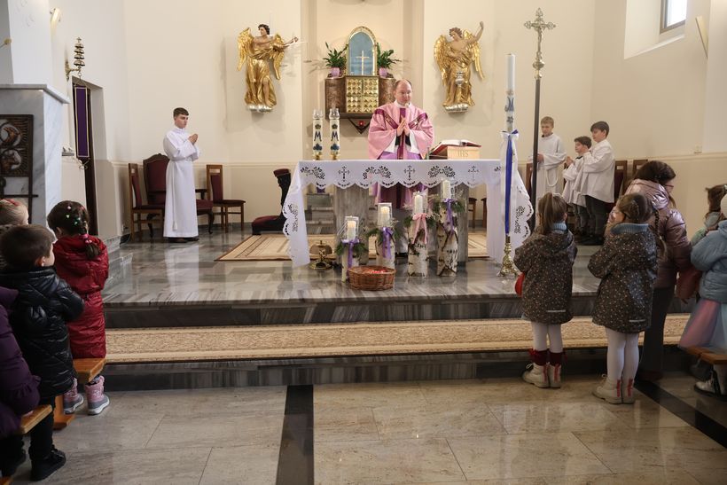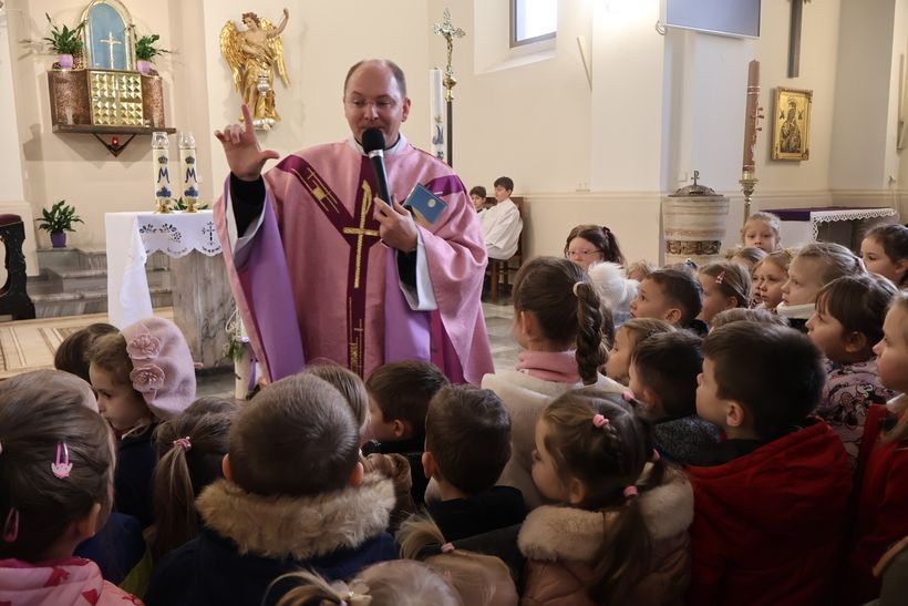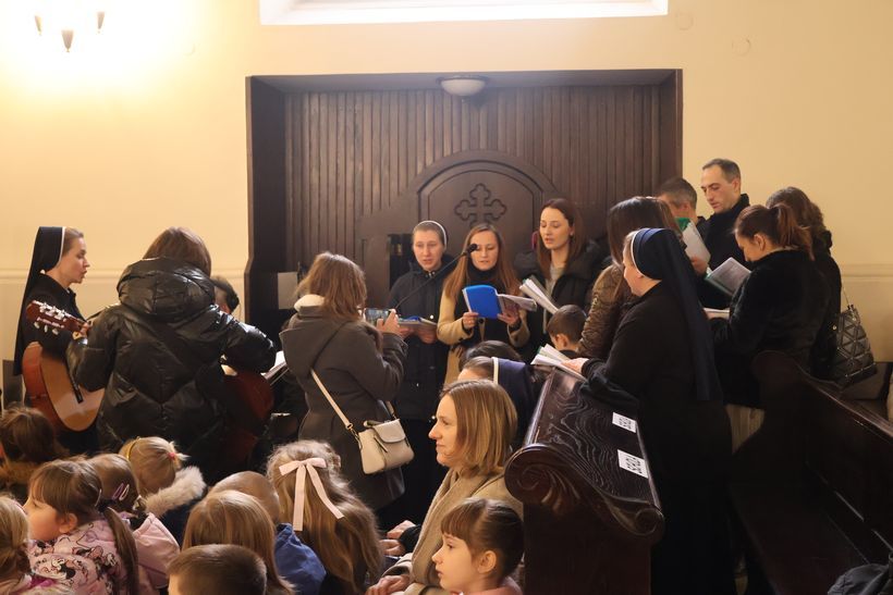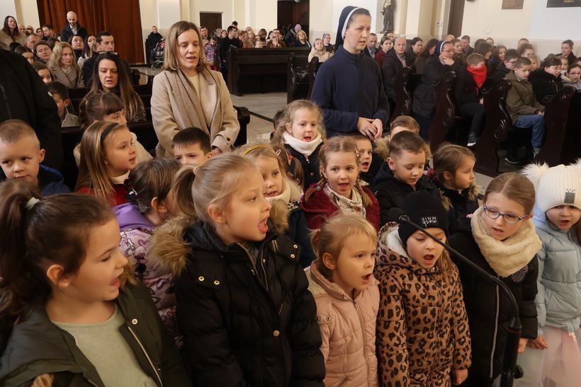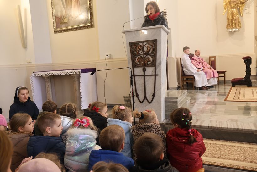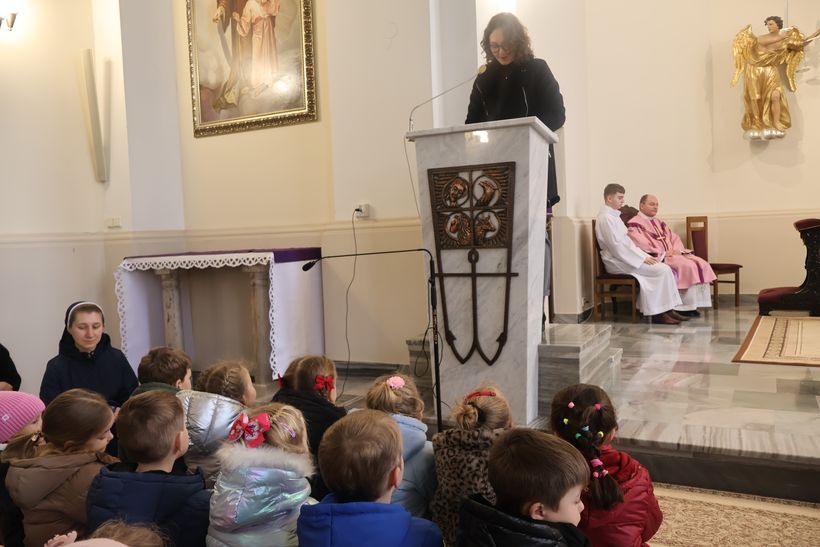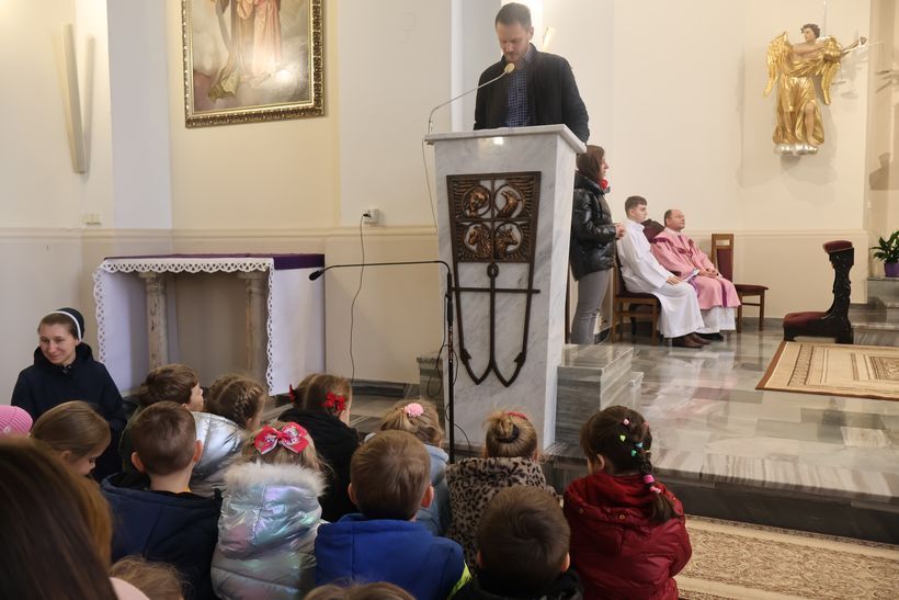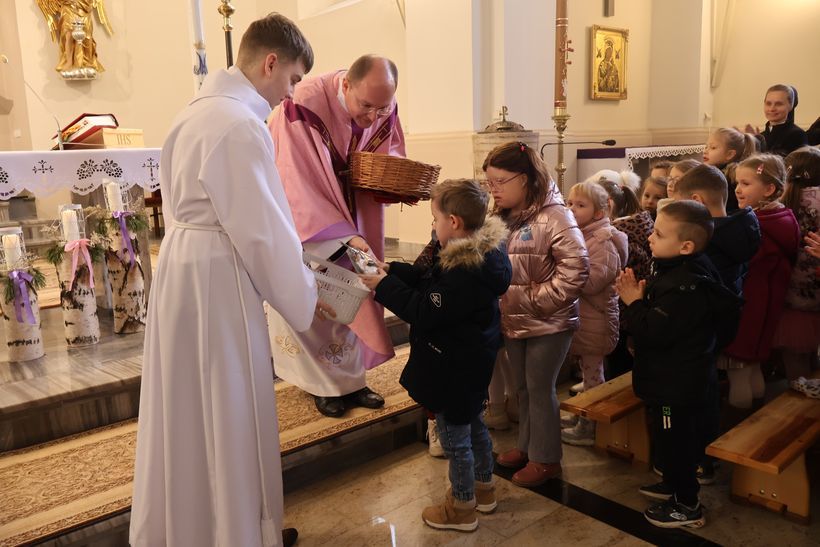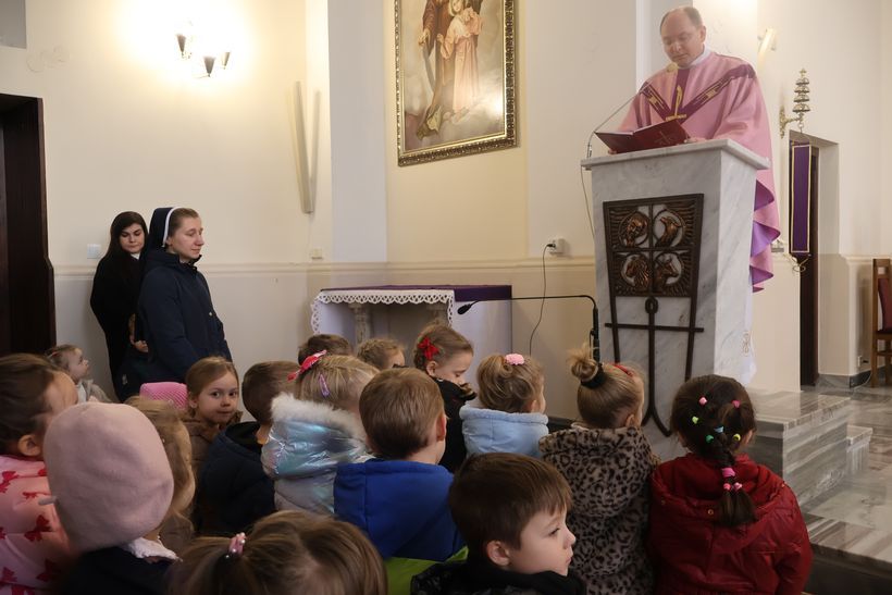 W III Niedzielę Adwentu – Niedzielę Gaudete Ochronkową Wspólnotą spotkaliśmy się w naszym kościele klasztornym na uroczystej Eucharystii. Był to czas wspólnej modlitwy przygotowującej nasze serca na nadchodzące Święta Bożego Narodzenia. Mszy Świętej przewodniczył ks. Marcin Gryzło z radia RDN. W słowie skierowanym zarówno do dzieci jaki i do dorosłych Ks. Marcin zwrócił uwagę na to jak ważne jest docenianie małych gestów dobroci, które otrzymujemy każdego dnia. Przypomniał nam, że prawdziwa radość rodzi się z wdzięczności za to co już mamy! Ks. Marcin zachęcał, byśmy zrezygnowali z narzekania, a pamiętali o pielęgnowaniu w rodzinach wzajemnej życzliwości. Na koniec odbyło się wylosowanie 10 przygotowanych przez dzieci serduszek z dobrymi uczynkami. Szczęśliwcy zabrali do domów Dzieciątka Jezus, które ozdobią wigilijne stoły. Za przygotowanie liturgii podczas Mszy Świętej odpowiedzialna była gr. „Biedronki”. Jak co miesiąc w modlitwie pomogła nam również Schola Rodziców. Dziękujemy wszystkim za tak liczne uczestnictwo w Eucharystii!