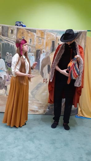 Aktorzy teatru EDEN przedstawili dzieciom historię opartą o biblijną przypowieść o miłosiernym samarytaninie. Przedstawienie było pełne dobrego humoru. Dzieci zostały zaangażowane do pomocy aktorom, a co najważniejsze, w sercach dzieci pozostał morał. Przekonały się, że warto bezinteresownie pomagać, nawet wtedy, gdy nikt tego nie widzi.
