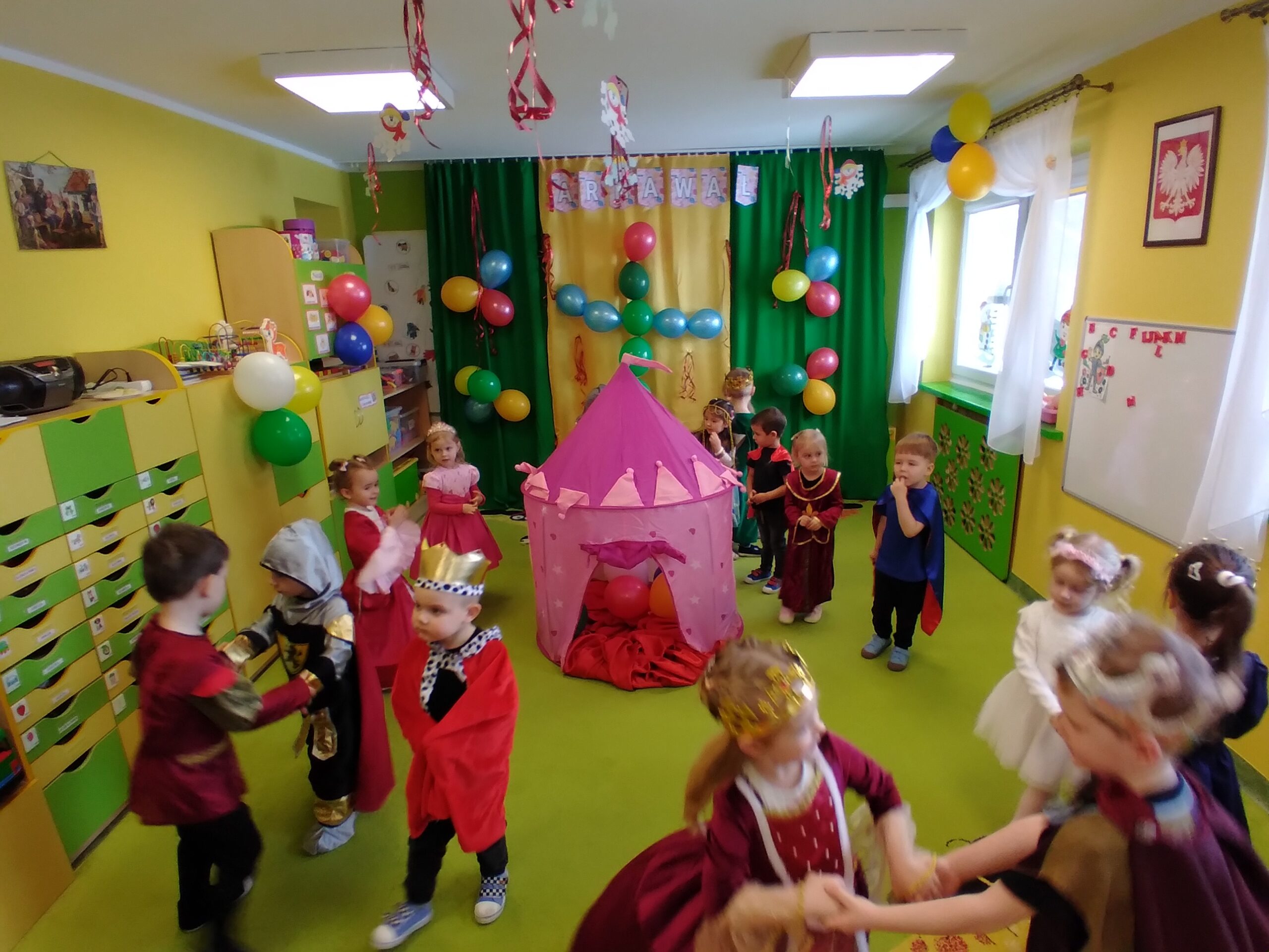 W naszej Ochronce był wyjątkowy Bal Karnawałowy. Sala ochronkowa stała się inna, jakby zamkowa. A na tej sali, Księżniczki, Królowie i Rycerze mali, radosną atmosferę stwarzali. Nikt się nie smucił, każdy był uśmiechnięty, wspólną zabawą na całego pochłonięty. A, że konkursów i tańców nie brakowało, wszyscy bardzo chcieli, by jak najdłużej to spotkanie trwało. Lecz nadszedł czas, gdy zabawie trzeba było powiedzieć, „do widzenia 😊” , teraz już pora wejść w czas wyciszenia. A jak ta nasza zabawa wyglądała, pokaże fotorelacja mała. s. Jadwiga