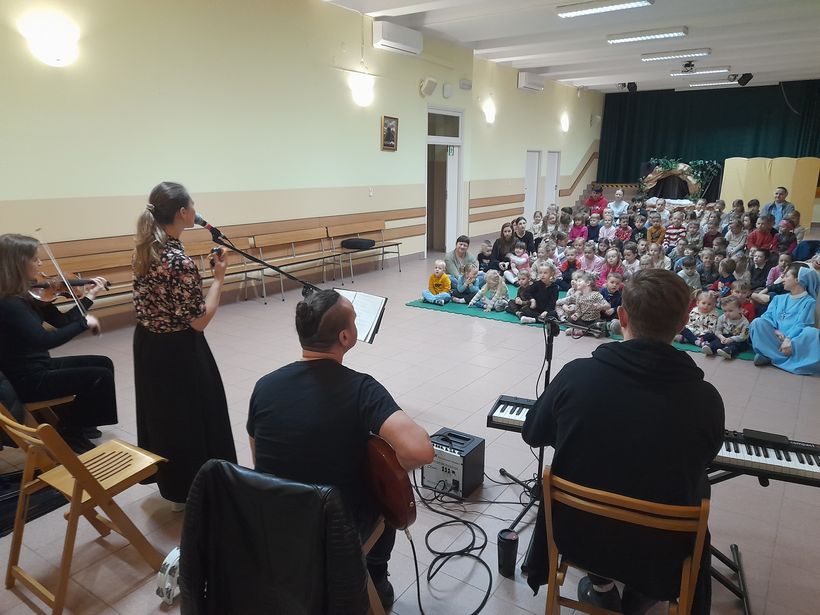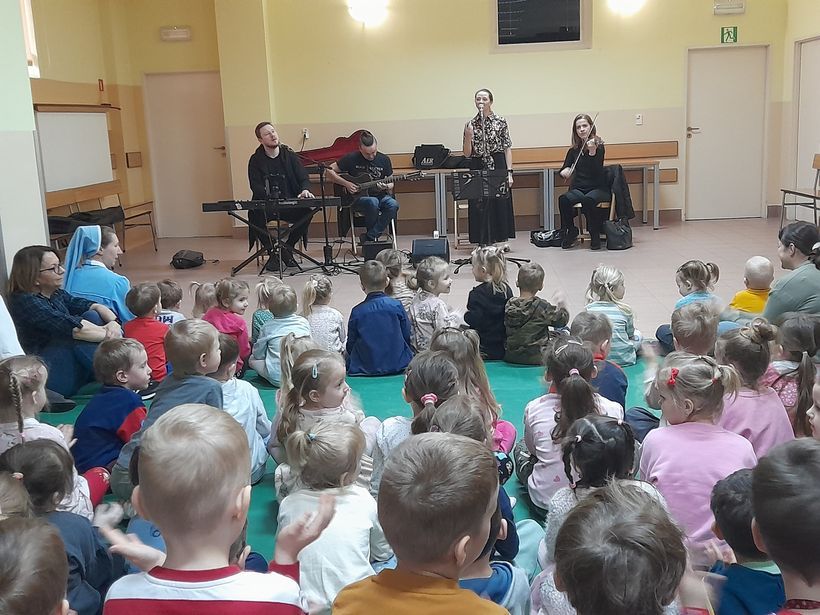 26 marca w Ochronce odbyło się niezwykłe spotkanie z muzykami Filharmonii Podkarpackiej w Rzeszowie. Tematem wydarzenia była poezja śpiewana – forma artystyczna łącząca muzykę i słowo. Artyści w przystępny i angażujący sposób przybliżyli dzieciom, czym są piosenki oparte na wierszach. Podczas spotkania zaprezentowali krótkie utwory, zachęcając przedszkolaki do aktywnego udziału poprzez wspólne klaskanie i powtarzanie prostych fragmentów. Muzycy opowiedzieli również o tym, jak powstaje piosenka – od tekstu po melodię. Dzięki temu dzieci mogły zajrzeć „od kuchni” do świata muzyki i twórczości artystycznej. Spotkanie przebiegło w radosnej i ciepłej atmosferze.