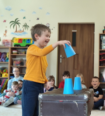 Spektakl nawiązywał do znanej przypowieści o synu marnotrawnym, jednak został przedstawiony w sposób bliski dzieciom – poprzez historię dziewczynki o imieniu Hania, która w swojej podróży odkrywała, co w życiu jest naprawdę ważne. Przedstawienie w przystępny i poruszający sposób ukazało wartości takie jak miłość, przebaczenie, dobroć oraz powrót do tego, co najcenniejsze. Nie zabrakło także elementów humorystycznych, dzięki którym dzieci nie tylko uważnie śledziły losy bohaterki, ale również świetnie się bawiły. Serdecznie dziękujemy Teatrowi Eden za piękne, wartościowe i pełne radości przedstawienie, które dostarczyło dzieciom wielu wrażeń.