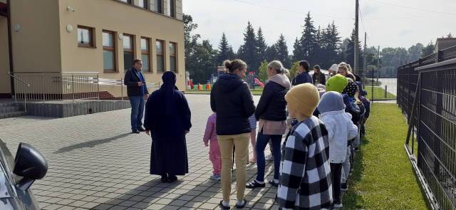 Dziś w naszej ochronce przeprowadzona została próbna ewakuacja, którą kierowała siostra Ewelina. odbyła się ona pod okiem instruktora BHP. Wszystkie dzieci i personel w szybkim tempie zebrali się przed budynkiem ochronki. chociaż były to tylko ćwiczenia, dzieci spisały się wspaniale.
