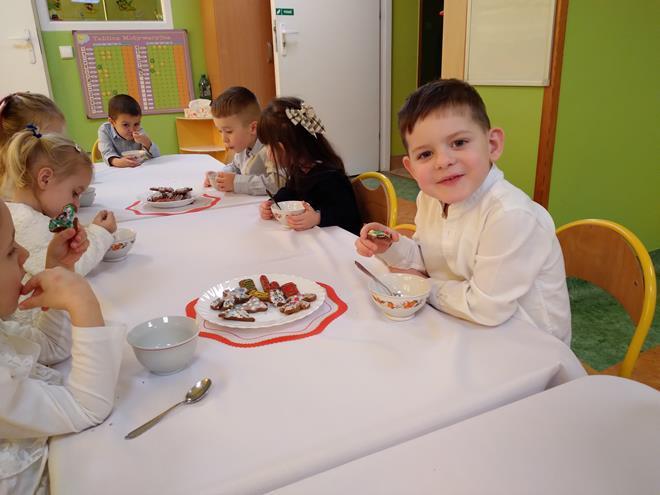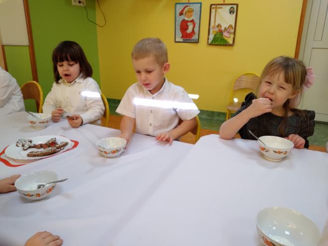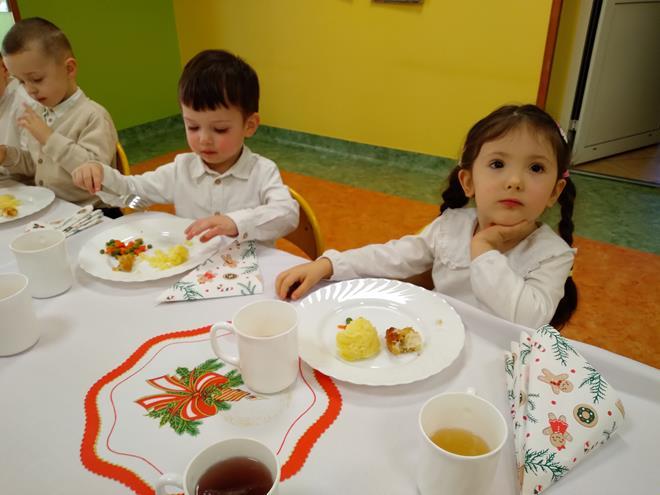 Wigilia Bożego Narodzenia to jeden z najpiękniejszych dni w roku, na który czekamy i przeżywamy go uroczyście. Tak było i w tym roku. Przedszkolaki oraz cały personel zebrali się wspólnie, aby wysłuchać historii narodzenia Pana Jezusa, połamać się opłatkiem, złożyć serdeczne życzenia, śpiewać kolędy oraz zjeść uroczysty obiad. W dzień Wigilii w naszej Ochronce panowała radosna, ożywiona atmosfera. Świąteczne dekoracje oraz dzieci w odświętnych strojach wprowadziły nastrój oczekiwania na Święta Bożego Narodzenia. s.Jadwiga