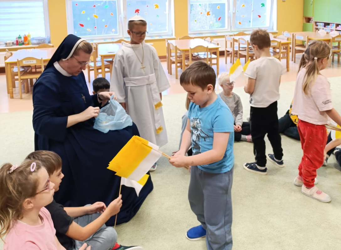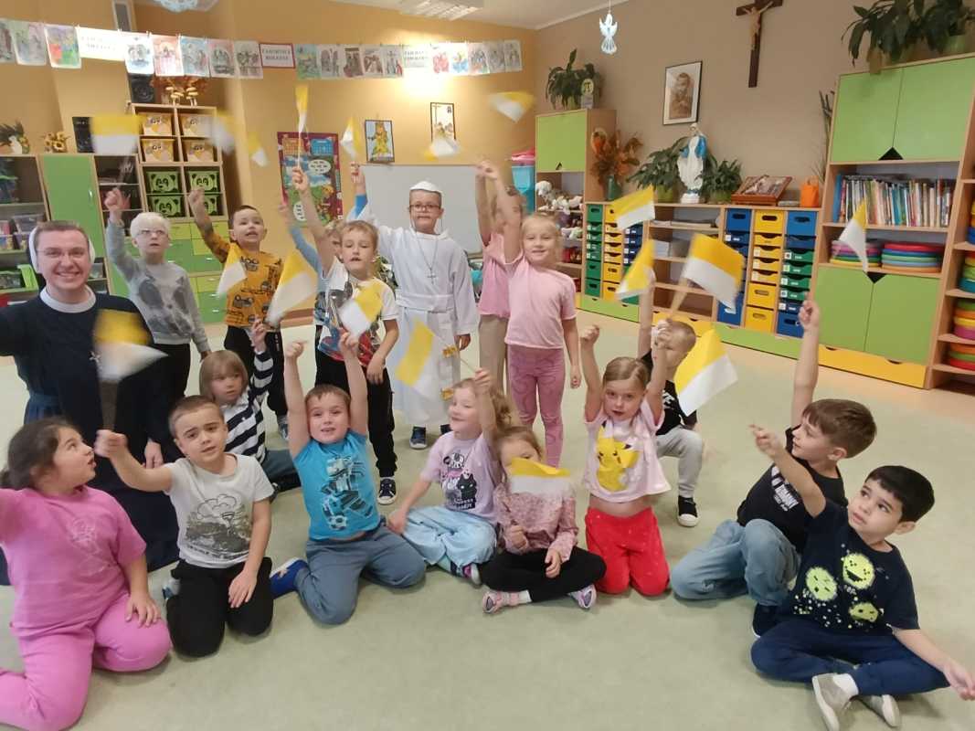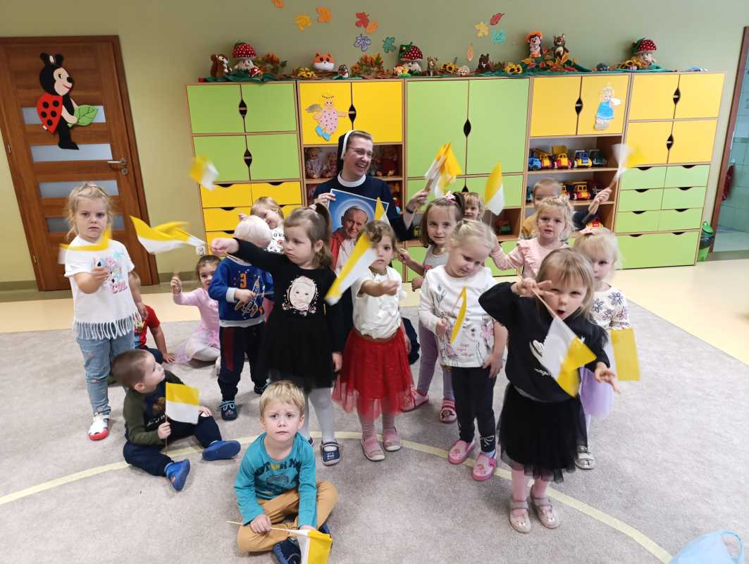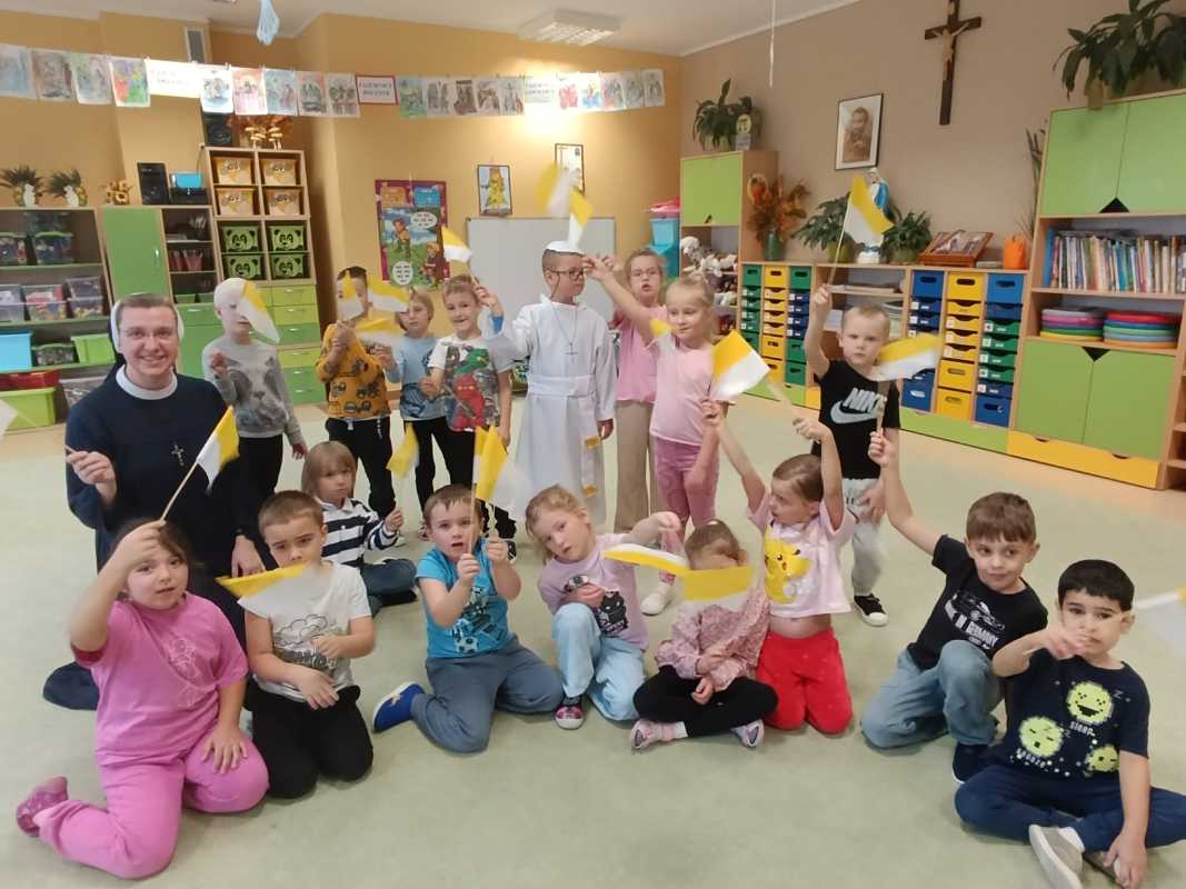 W tygodniu poprzedzającym Niedzielę Papieską nasze przedszkolaki uczestniczyły w wyjątkowych katechezach prowadzonych przez siostrę Lucynę. Dzieci poznawały postać św. Jana Pawła II, dowiadując się, kim był, jak żył i dlaczego tak bardzo kochał dzieci.