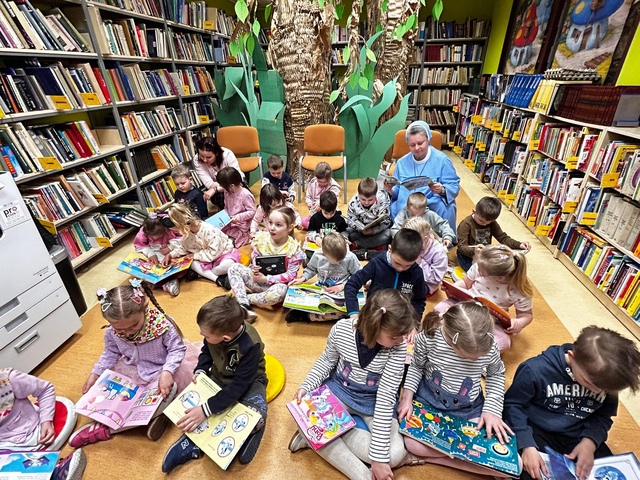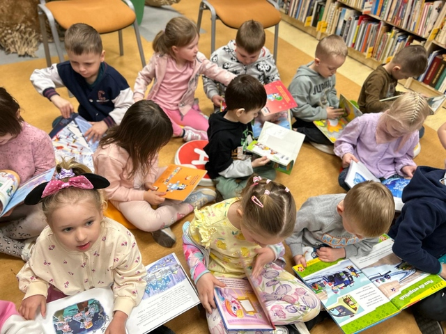 Dzieci z grupy „Pszczółek” udały się z wizytą do Biblioteki, podczas której odkrywały tajemniczy świat książek.