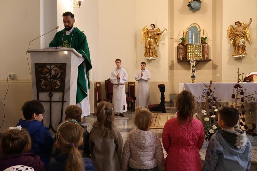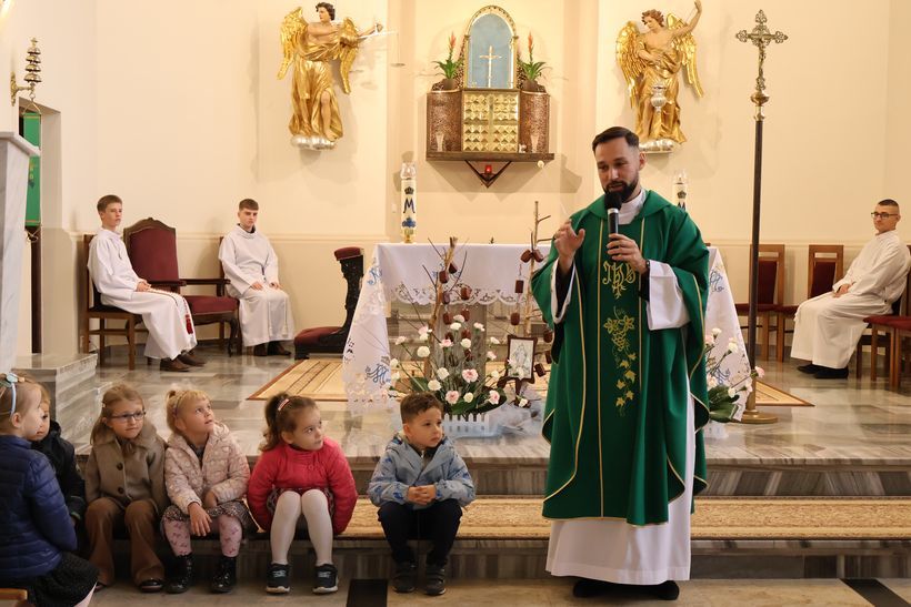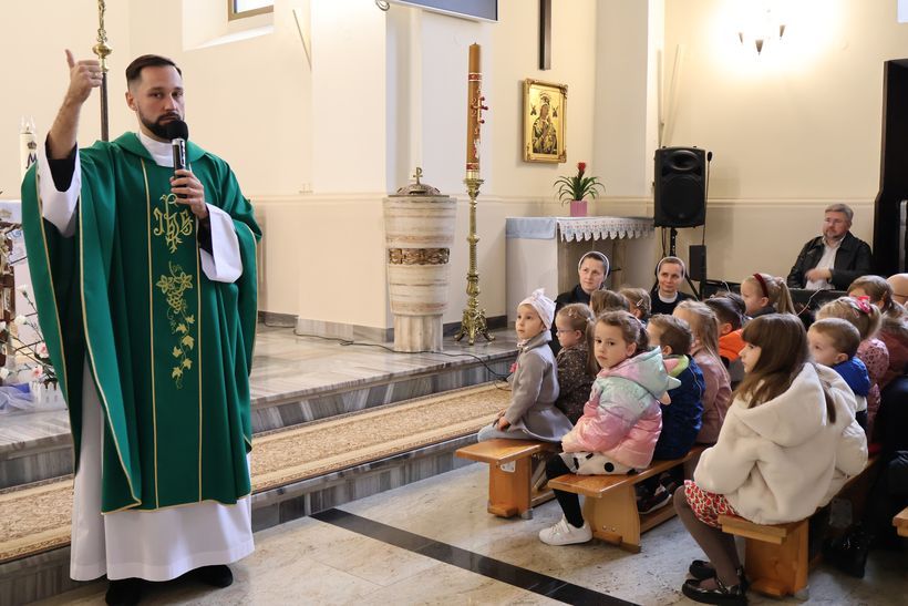 W niedzielę, 26 października 2025 roku, w kościele klasztornym uczestniczyliśmy we Mszy świętej, której przewodniczył o. Aleksander Ćwik CSsR. Liturgia XXX Niedzieli Zwykłej koncentrowała się wokół przypowieści o faryzeuszu i celniku. W homilii o. Aleksander podkreślił znaczenie pokory i szczerości w modlitwie. Zwrócił uwagę, że Bóg nie patrzy na zewnętrzne oznaki pobożności, lecz na serce człowieka. Pokorna postawa celnika, który uznał własną słabość, została przez Jezusa postawiona jako wzór dla wszystkich wierzących. Ojciec zachęcał, by w codziennym życiu unikać porównywania się z innymi i zamiast tego szczerze stawać przed Bogiem w prawdzie i zaufaniu. W liturgię aktywnie włączyły się dzieci oraz schola rodziców, ubogacając wspólny śpiew i modlitwę. Za czytania mszalne odpowiedzialni byli rodzice z grupy „ Mrówek”, którzy z zaangażowaniem włączyli się w przebieg Eucharystii.