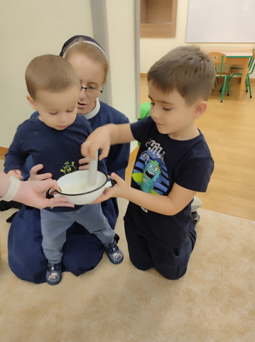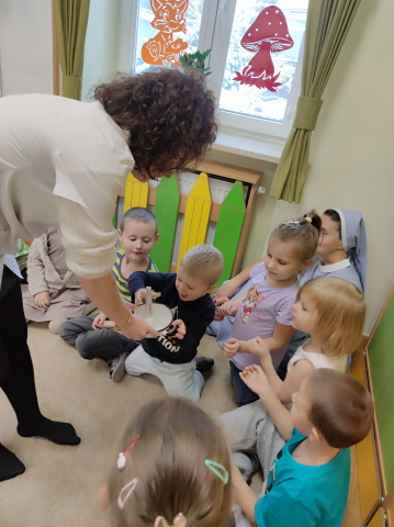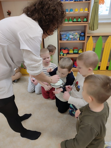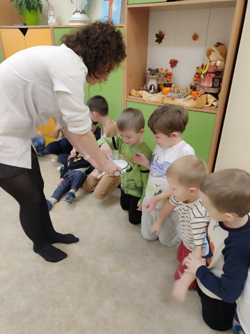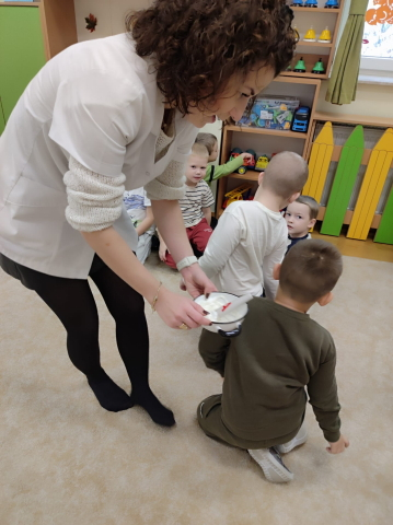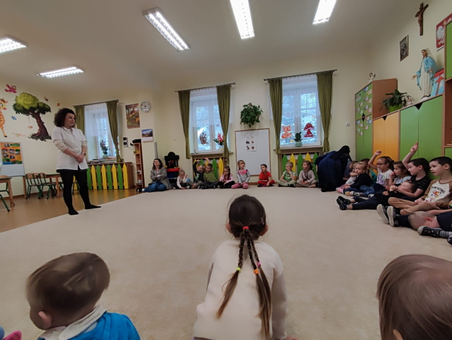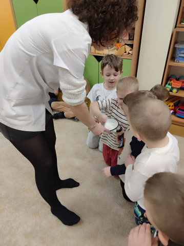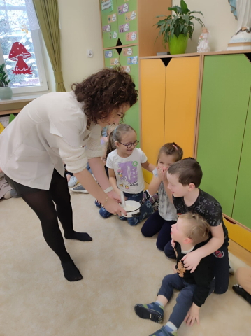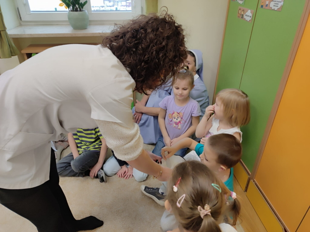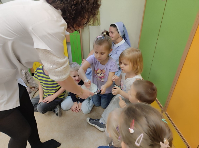 W ramach cyklu „Poznajemy zawody naszych rodziców” naszą Ochronkę odwiedziła Pani Karolina Kucharska – farmaceutka, a prywatnie ciocia Tymusia z grupy „Pszczółki”. Pani Karolina z ogromnym zaangażowaniem opowiedziała dzieciom o swojej pracy oraz o tym, jak powstają różne preparaty, które możemy znaleźć w aptece. Największą atrakcją spotkania były warsztaty tworzenia kremu – każde dziecko miało okazję aktywnie uczestniczyć w jego przygotowaniu. Pani Karolina pokazywała kolejne etapy powstawania kosmetyku, zachęcając przedszkolaki do samodzielnego odmierzania składników i mieszania ich w odpowiednich proporcjach. Dzieci były niezwykle zaciekawione, z dużą radością obserwowały, jak z poszczególnych elementów powoli powstaje gotowy krem. Udział w warsztatach pozwolił im zobaczyć, jak fascynująca i precyzyjna potrafi być praca farmaceuty. Na zakończenie spotkania każdy przedszkolak otrzymał słodki upominek, który wywołał wiele uśmiechów i dodatkowej radości. Serdecznie dziękujemy Pani Karolinie za inspirującą wizytę, pełną zaangażowania oraz fascynujące wrsztaty, dzięki którym nasze dzieciaki mogły zajrzeć do świata farmacji. Dziękujemy również rodzicom Tymusia za wyjście z inicjatywą i zaangażowanie osoby tak kompetentnej i pełnej pasji. To dzięki takim pomysłom nasza Ochronka może gościć wyjątkowych ludzi i pokazywać dzieciom, jak różnorodne i ciekawe zawody są wokół nas.