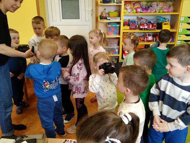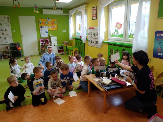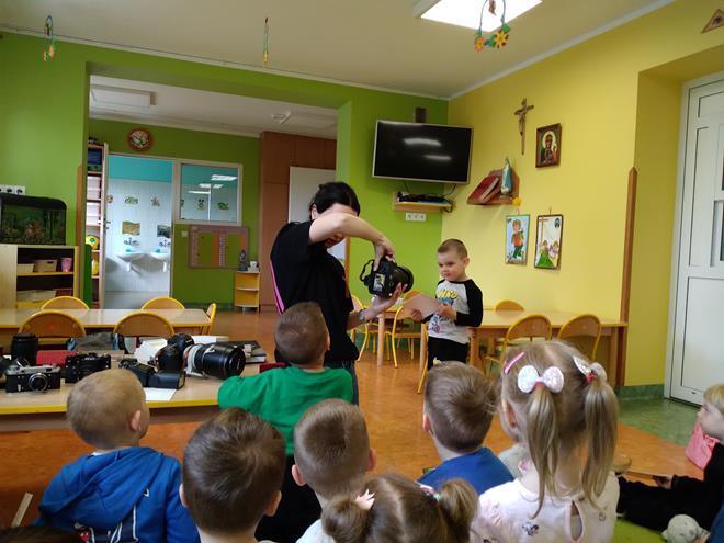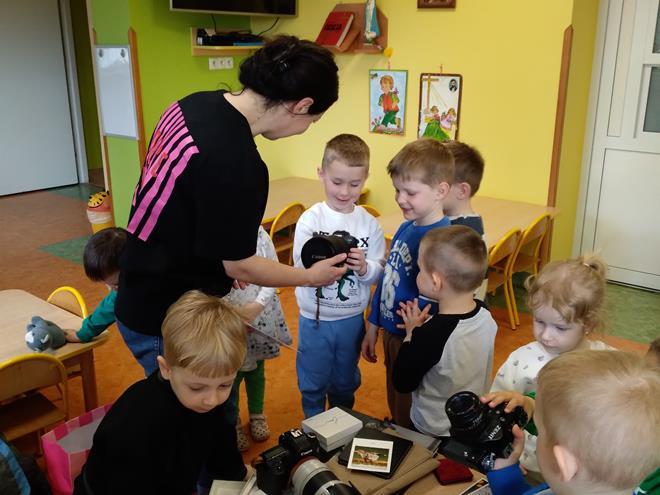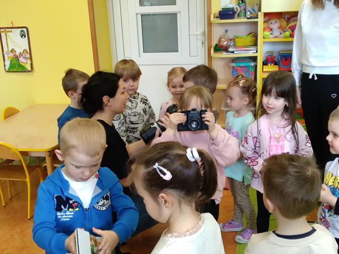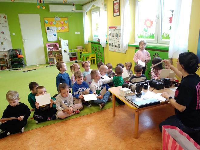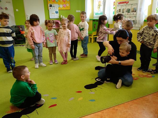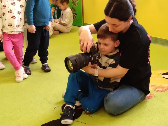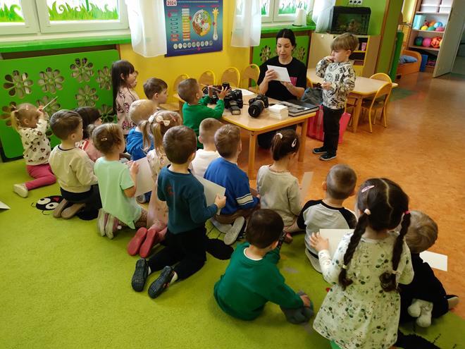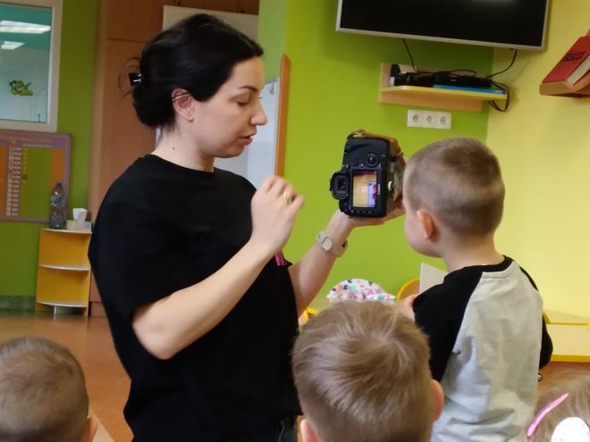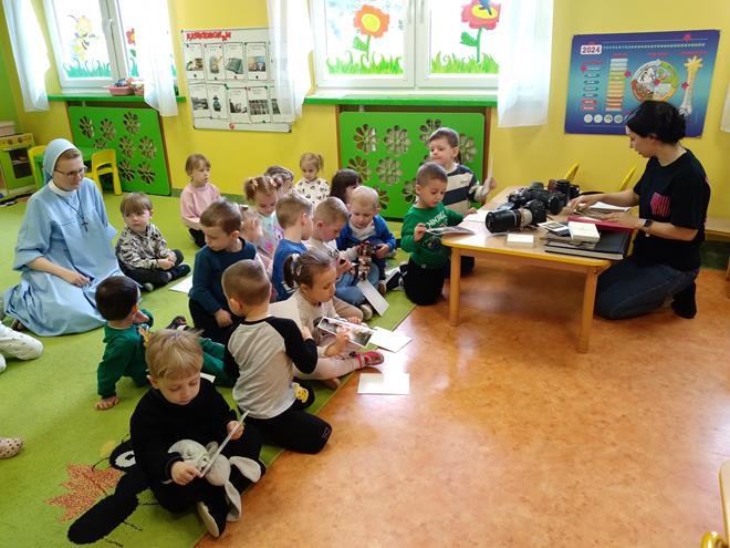 W naszej Ochronce odbyło się spotkanie z fotografem. Nasz gość w bardzo ciekawy sposób opowiedział o tym, na czym polega praca fotografa. Dzieci dowiedziały się, że to nie tylko „naciskanie guzika”, ale przede wszystkim umiejętność patrzenia na świat i łapania ulotnych chwil. Zaprezentowany został profesjonalny sprzęt. Przedszkolaki mogły z bliska obejrzeć różne aparaty, ciężkie obiektywy oraz pooglądać piękne pamiątkowe albumy. Jak to działa? Dzieci dowiedziały się, do czego służy lampa błyskowa i dlaczego czasem fotograf musi „schować się” za wielkim aparatem. Wspólnie sprawdzaliśmy, jak ustawić się do zdjęcia, żeby wyglądało ciekawie, i co to znaczy „dobre światło”. Dzieci miały mnóstwo pytań: „Czy aparat widzi w ciemności?”, „Jak zrobić zdjęcie, żeby nikt nie był rozmazany?” czy „Gdzie chowają się zdjęcia w środku?”. Na każde z nich nasz gość odpowiedział z wielką cierpliwością, rozbudzając w maluchach nową pasję. To było niezwykle inspirujące spotkanie, które pokazało nam, że fotografia to połączenie techniki, cierpliwości i wielkiej wyobraźni. Kto wie, może po dzisiejszym dniu rośnie wśród nas przyszły zdobywca nagród fotograficznych? s. Jadwiga