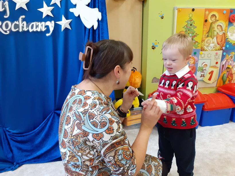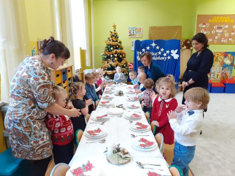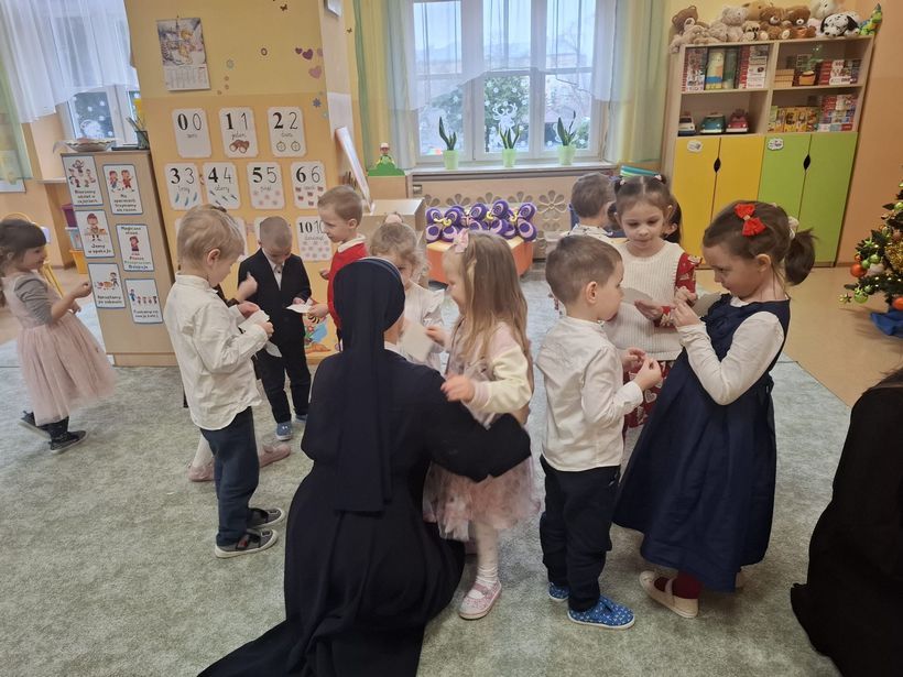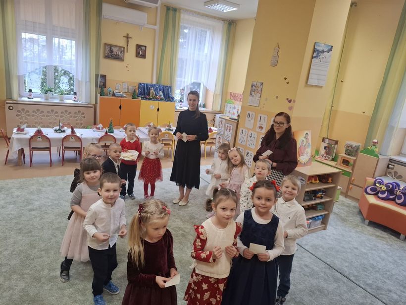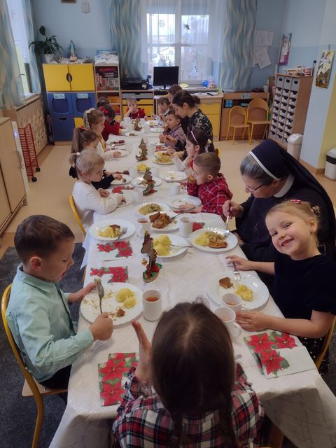 Dnia 22 grudnia w naszej Ochronce odbyło się uroczyste spotkanie świąteczne, podczas którego składaliśmy sobie życzenia bożonarodzeniowe. W wydarzeniu uczestniczyła cała nasz Wspólnota Ochronkowa, Siostra Przełożona domu Barbara Żydek oraz przedstawiciele Rady Rodziców. Był to wyjątkowy czas przeżywany w atmosferze radości, bliskości i prawdziwie rodzinnego ciepła. Spotkanie poprowadziła Siostra Dyrektor Edyta Piekarz, serdecznie witając wszystkich zgromadzonych i wprowadzając nas w świąteczny nastrój. Ważnym i podniosłym momentem było wspólne czytanie Słowa Bożego, które skłaniało do refleksji nad istotą Świąt Bożego Narodzenia i napełniało serca pokojem. Świąteczne życzenia wszystkim Pracownikom Ochronki złożył Przewodniczący Rady Rodziców Piotr Moskal dziękując za codzienną troskę, zaangażowanie oraz wychowanie dzieci w duchu wartości chrześcijańskich. Ciepłe słowa wdzięczności oraz świąteczne życzenia skierowała także Siostra Przełożona Barbara. Szczególną radość przyniósł występ dzieci, które z wielkim zaangażowaniem zaprezentowały świąteczną scenkę oraz recytowały wiersze bożonarodzeniowe. Po wspólnym spotkaniu dzieci wraz z wychowawcami udały się do swoich sal, tam w rodzinnej atmosferze dzieliliśmy się opłatkiem, a następnie zasiedli do wigilijnego stołu. W ramach przedświątecznych odwiedzin delegacja z Ochronki udała się również do Burmistrza Miasta Dębicy Pana Mateusza Kutrzeby i Dyrektora MZO w Dębicy Pana Ireneusza Kozaka – przekazując serdeczne życzenia bożonarodzeniowe i noworoczne oraz wyrazy wdzięczności za okazywaną Ochronce życzliwość i współpracę. Spotkania te były pięknym czasem wspólnego przeżywania tajemnicy Bożego Narodzenia, umacniania więzi oraz dzielenia się radością, pokojem i dobrem. Niech Dzieciątko Boże wszystkim nam błogosławi!