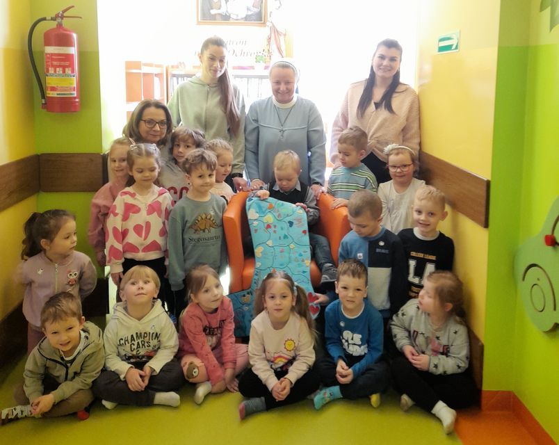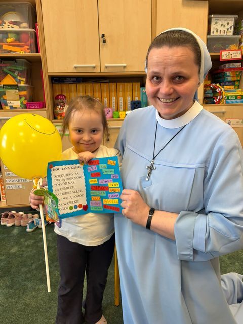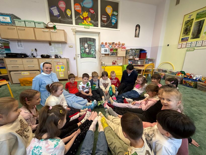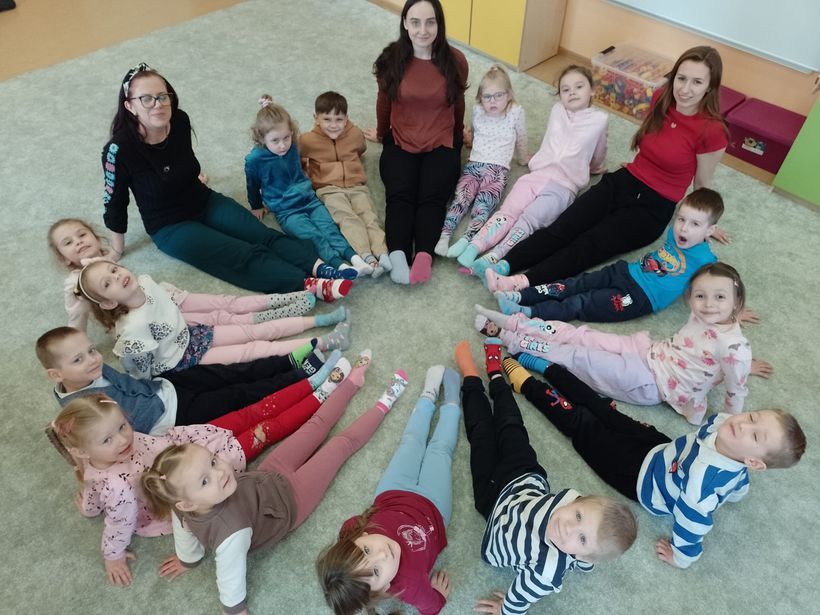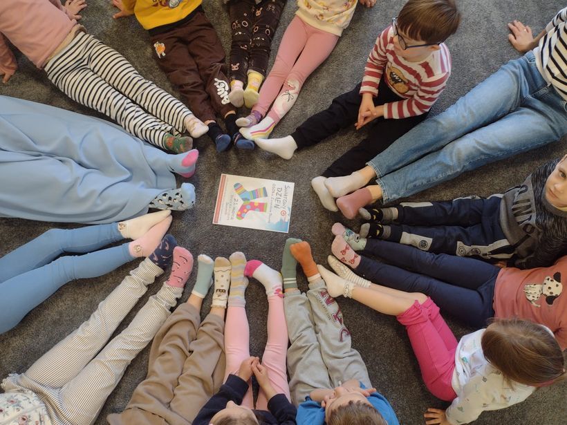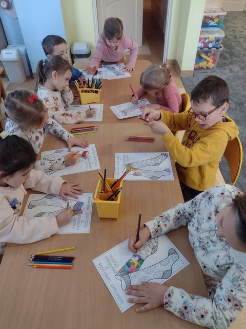 Z racji, że Światowy Dzień Zespołu Downa przypadł 21 marca w sobotę, my w naszej Ochronce obchodziliśmy go w poniedziałek 23 marca. Był to wyjątkowy dzień, którego celem było uwrażliwienie dzieci na potrzeby innych oraz kształtowanie postawy akceptacji i szacunku wobec osób z zespołem Downa. Podczas zajęć dzieci uczestniczyły w rozmowach na temat różnorodności i wyjątkowości każdego człowieka. Wspólnie oglądaliśmy materiały edukacyjne dostosowane do wieku dzieci oraz wykonywaliśmy prace plastyczne nawiązujące do tematu dnia. Dzieci chętnie brały udział w aktywnościach, wykazując się dużą empatią i zaangażowaniem. Symbolem tego dnia są kolorowe, nie do pary skarpetki – dlatego również w naszej grupie nie zabrakło tego akcentu. Była to doskonała okazja do rozmowy o tym, że każdy z nas jest inny, a jednocześnie równie ważny. W tym szczególnym dniu składaliśmy dzieciom z zespołem Downa serdeczne życzenia z okazji ich święta oraz wręczyliśmy im wcześniej przygotowane laurki, co sprawiło wszystkim wiele radości i wzruszeń. Dzień przebiegł nam w radosnej i życzliwej atmosferze, a dzieci wyniosły z nich cenną lekcję akceptacji i otwartości na drugiego człowieka.