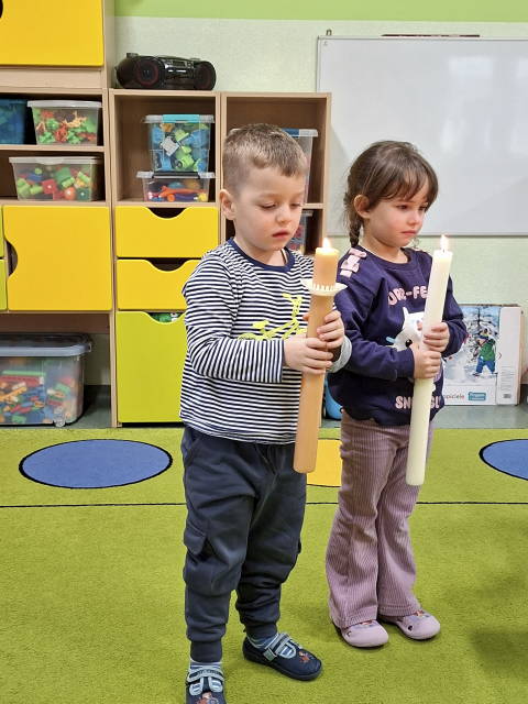 Święto Ofiarowania Pańskiego czyli  Matki Bożej Gromnicznej, to dzień w którym nasze przedszkolaki poznały historię o Matce Bożej z wilkami oraz przypomniały sobie teksty z Pisma Świętego na temat Ofiarowania Pańskiego. Nie zabrakło także modlitwy i życzeń dla Sióstr w tak wyjątkowym dniu. Dniu, który od 1997 r.  w  Kościele powszechny został ustanowiony przez św. Jana Pawła II Dniem Życia Konsekrowanego, poświęcony modlitwie za osoby, które oddały swoje życie na służbę Bogu i ludziom w niezliczonych zakonach, zgromadzeniach zakonnych, stowarzyszeniach życia apostolskiego i instytutach świeckich.