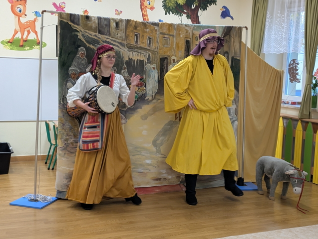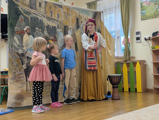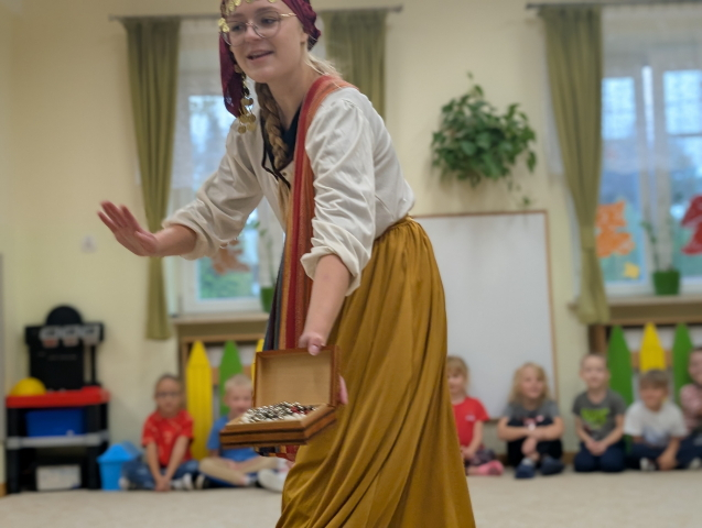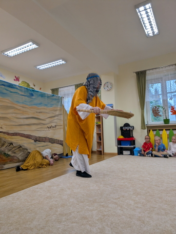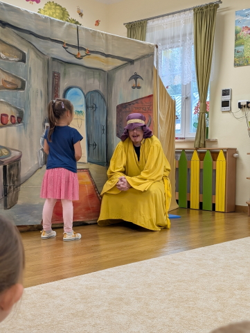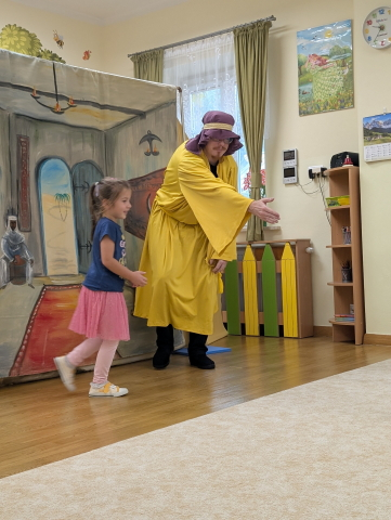 Nasze przedszkolaki miały okazję uczestniczyć w niezwykłym przedstawieniu przygotowanym przez Teatr Eden. Aktorzy zaprezentowali piękną i pouczającą opowieść o dobrym człowieku, która w prosty i zrozumiały sposób przekazała dzieciom ważne wartości: dobroć, życzliwość, pomoc innym oraz radość płynącą z czynienia dobra. Spektakl był pełen ciekawych dialogów, humoru i interakcji z publicznością. Dzieci żywo reagowały, angażowały się w przedstawienie i z wielkim zainteresowaniem śledziły losy bohaterów. To spotkanie było nie tylko okazją do świetnej zabawy, ale również do refleksji i rozmów o tym, jak ważne są dobre uczynki w codziennym życiu.