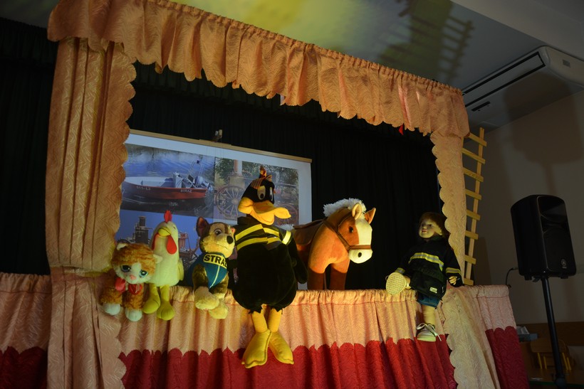 25 września nasze przedszkole odwiedzili aktorzy Teatru Lalek Art Cinema z Nowego Sącza. Zaprosili wszystkich widzów do zapoznania się z Maciusiem Strażakiem. Dzięki kolejnym postaciom, barwnym dialogom oraz muzyce, przedszkolaki z wielką uwagą śledziły zachowania głównego bohatera – Maciusia. Przedstawienie miało na celu uświadomienie naszym najmłodszym zagrożeń i niebezpieczeństw wynikających z ognia. Przedszkolaki utrwaliły sobie również numery alarmowe.