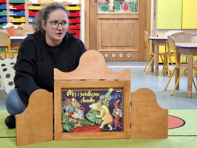 Naszą Ochronkę już po raz kolejny odwiedziła zaprzyjaźniona z nami Pani Ania z Pedagogicznej Biblioteki w Gostyniu, by przedszkolaki obejrzały teatrzyk kamishibai – bajkę pt. „ Miś i świąteczna choinka”. Pani Ania w zabawny sposób opowiedziała nam góralską legendę o tradycji stawiania i ubierania choinki. dzieci z zainteresowaniem słuchały opowiadania, a potem radośnie bawiły się z panią Anią. Dziękujemy, za tak otwarte serce dla dzieci.
