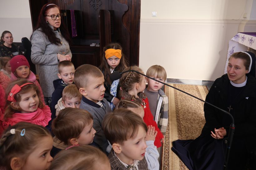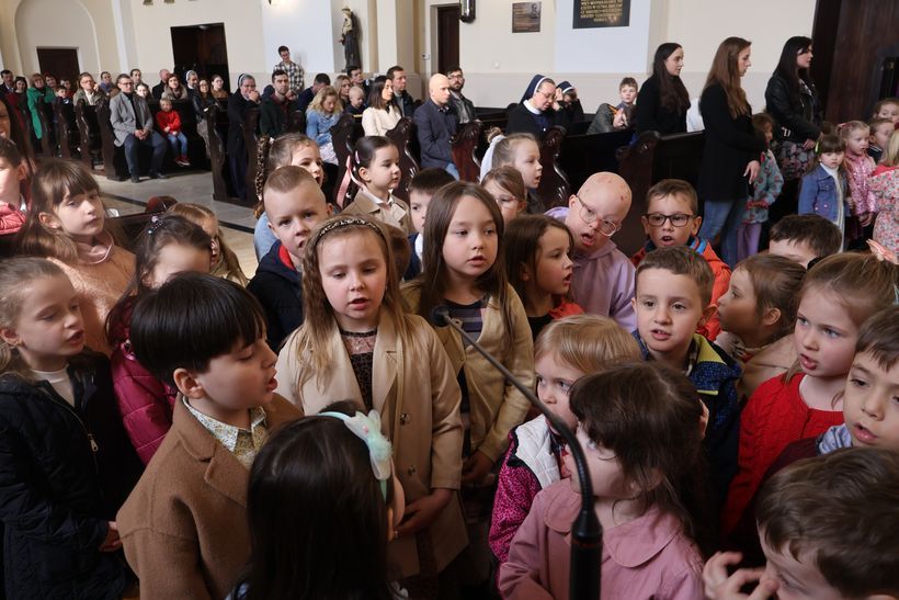 W dniu 22 marca 2026 r. w kościele klasztornym odbyła się uroczysta Msza Święta, podczas której modliliśmy się o pokój na świecie w naszej Ojczyźnie i w naszych sercach. Przed rozpoczęciem Eucharystii mieliśmy okazję obejrzeć niezwykłą pantomimę przygotowaną przez osoby z niepełnosprawnościami oraz ich opiekunami z Domu Pomocy Społecznej w Skoczowie. Przedstawienie ukazywało, jak Pan Bóg towarzyszy człowiekowi w trudnych chwilach życia, pomagając przezwyciężać cierpienie i przeciwności losu. Przekaz płynący z pantominy był bardzo poruszający. Przypominał, że nawet w największym bólu wiara w Boga przynosi ukojenie i nadzieję. W kazaniu br. Jacek Kania nawiązał do symbolicznego plakatu z koroną cierniową, który zdobił ołtarz. Zachęcił dzieci do aktywnego włączenia się w przeżywanie Wielkiego Postu poprzez dobre uczynki. Każde dziecko miało za zadanie ozdobić czerwone serduszko i zapisać na nim z pomocą rodzica jeden dobry uczynek, który udało im się spełnić. Pokazało to, że poprzez codzienne dobro możemy towarzyszyć Panu Jezusowi w Jego cierpieniu i okazywać Mu naszą miłość. Kapłan podkreślił również, że prawdziwe życie chrześcijańskie nie ogranicza się jedynie do obecności w kościele, ale wyraża się przede wszystkim w codziennych postawach dobroci, życzliwości i miłości wobec innych ludzi. Schola rodziców, która zaangażowała się w przygotowanie oprawy muzycznej, poprzez swój śpiew stworzyła atmosferę modlitwy i wspólnoty, włączając wszystkich uczestników w głębsze przeżywanie liturgii. Dziękujemy wszystkim za obecność oraz wspólną modlitwę.