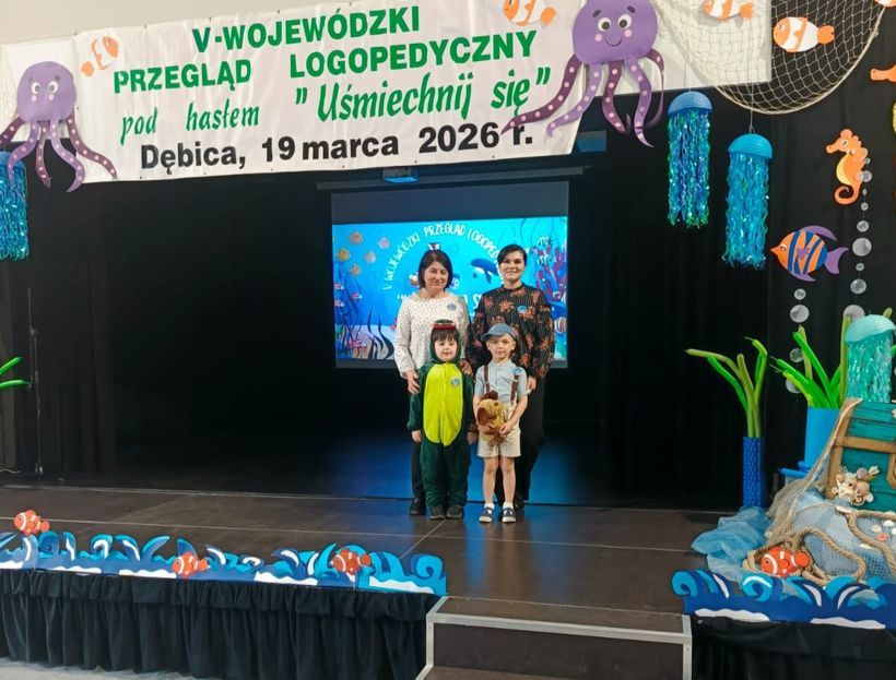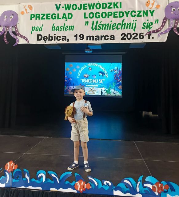 Dnia 19 marca Jaś Zarychta z grupy „Biedronek” oraz Antoś Leżoń z grupy „Świetlików” z dumą zaprezentowali naszą Ochronkę w V Wojewódzkim Przeglądzie Logopedycznym „Uśmiechnij się” zorganizowanym przez Zespół Szkół Specjalnych w Dębicy. Podczas występu chłopcy przepięknie wyrecytowali swoje wiersze, wykazując się dużą odwagą i zaangażowaniem. Udział w konkursie był dla nich również wspaniałą zabawą i dostarczył wielu radosnych chwil. Gratulujemy chłopcom sukcesu i życzymy dalszych osiągnięć!