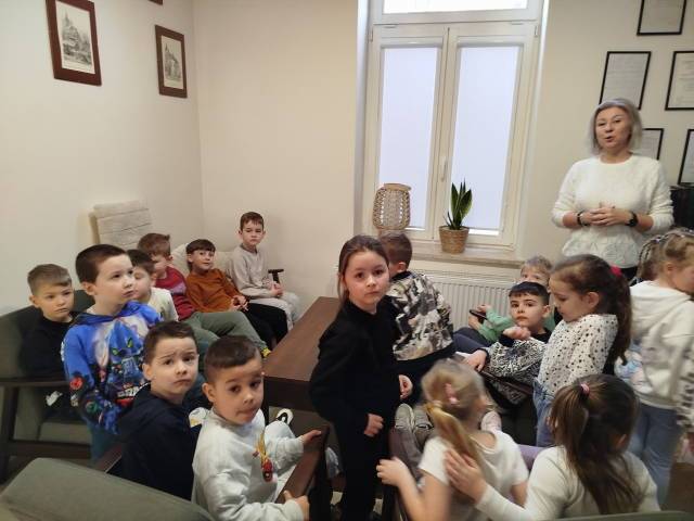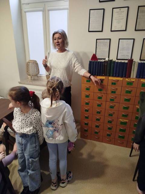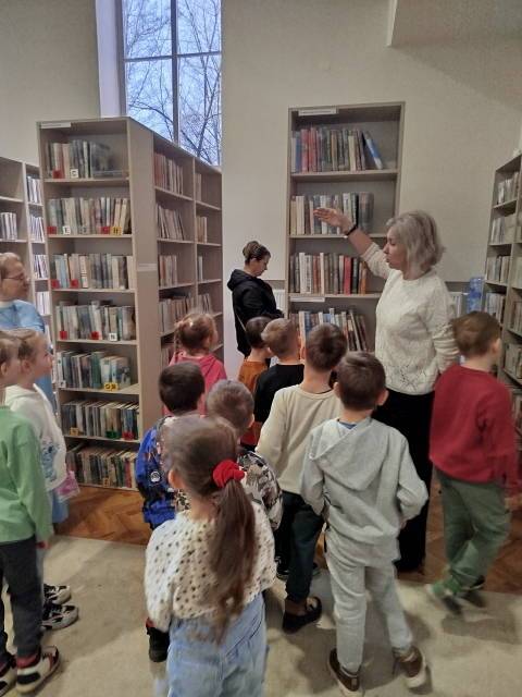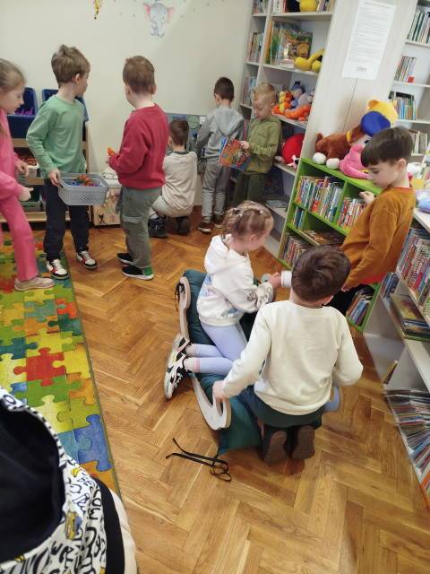 Starszaki poznały już litery i stawiają pierwsze kroki na drukowanych kartkach. Jednak prawdziwy przyjaciel książki to ten, który zagląda czasami do biblioteki. Dlatego wszystkie starszaki wybrały się na spotkanie z książką w miejskiej bibliotece, która znajduje się w pilźnieńskim Sokole. Dzieci z ciekawością poznały historię powstania biblioteki, kąciki biblioteczne i spisy książek. Dowiedziały się jak wypożyczyć książkę i jak ją szanować. Na zakończenie pobawiły się w kąciku dla dzieci. Zabrały także ze sobą książkę, która stanie się zachętą do odwiedzania biblioteki wraz z rodzicami.