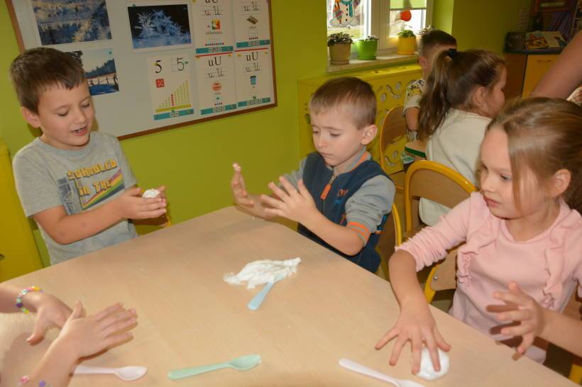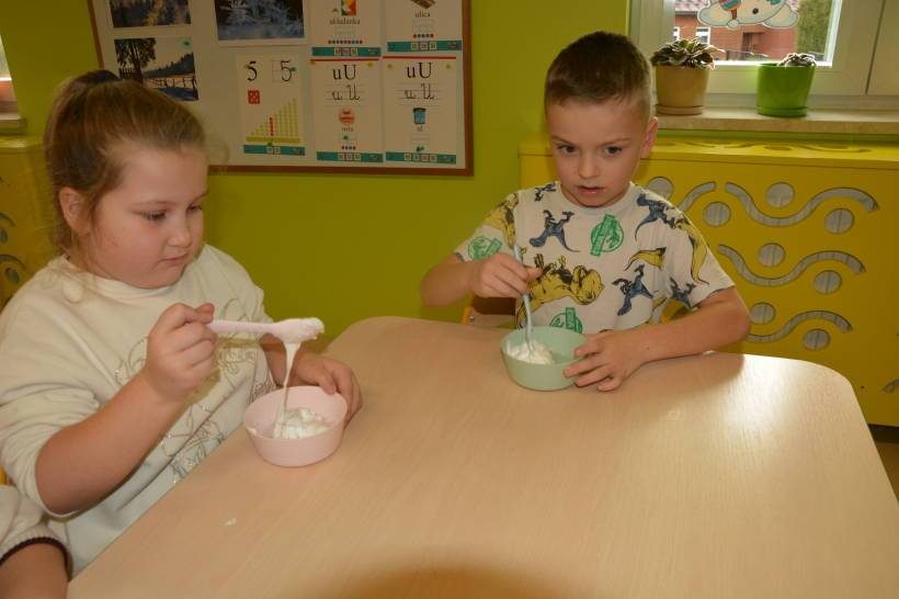 slime, poznawały jej właściwości, a podczas zabawy rozwijały zmysł dotyku, pobudzały