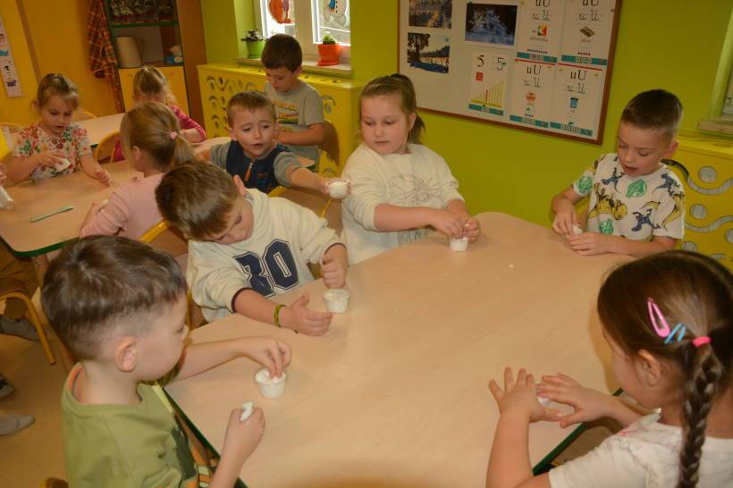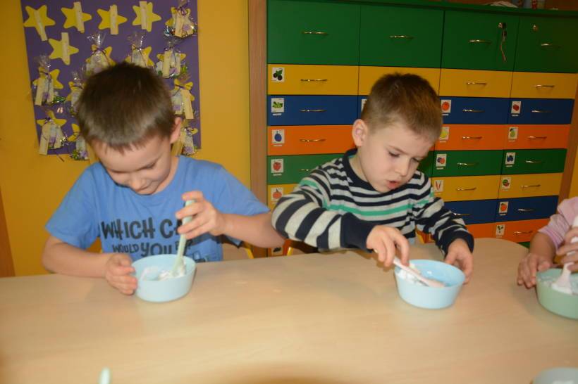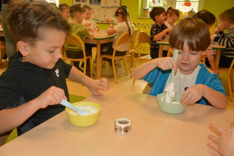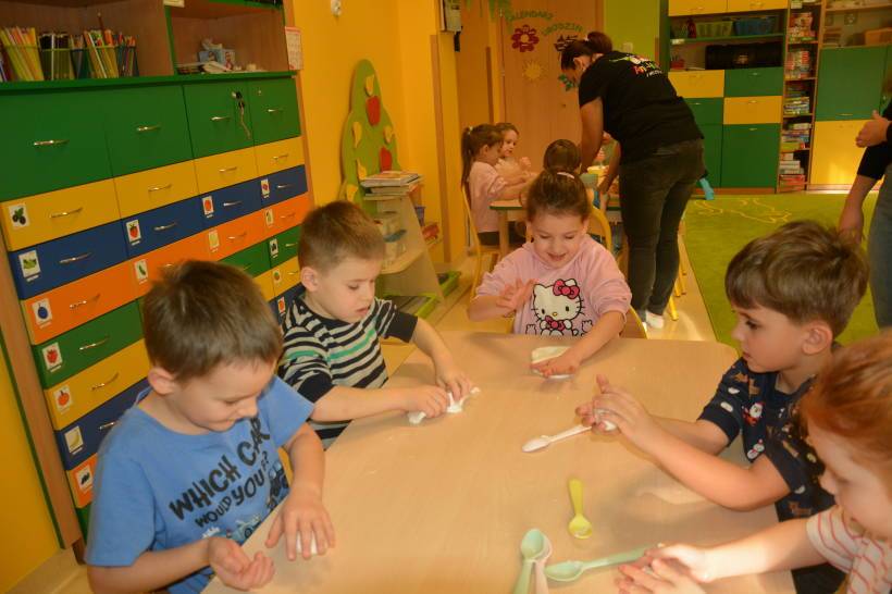 Tym razem przedszkolaki samodzielnie, zgodnie z instrukcją prowadzącej, wykonały masę