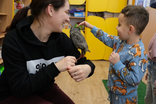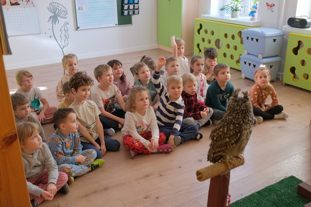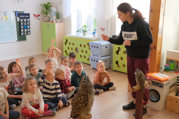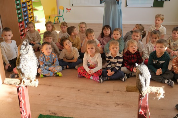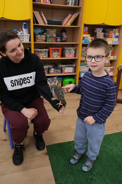 Kolejne warsztaty przyrodnicze były okazją do poznania życia i zwyczajów sowy. Dzieci z zaciekawieniem słuchały opowiadania o Guciu, który czasem potrafi też psocić 😉