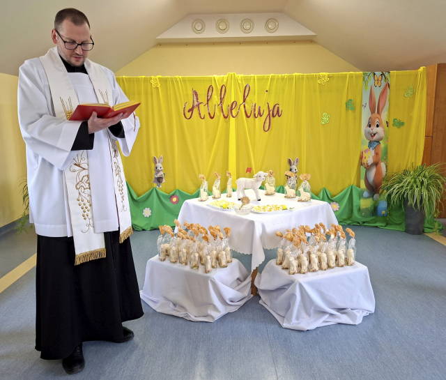 Z okazji zbliżających się Świąt Wielkanocnych w środowy poranek dzieci, siostry i pracownicy naszej Ochronki spotkali się wspólnie, by przeżyć ważne chwile….święcenia pokarmów. Ksiądz Sebastian poświęcił baranki oraz jajka, wprowadzając wszystkich w atmosferę wspólnej modlitwy i skupienia. Potem było dzielenie się jajkiem i składanie życzeń. To wyjątkowe wydarzenie pozwoliło nam jeszcze głębiej przeżyć wielkanocne tradycje. Spotkanie było nie tylko okazją do wspólnego świętowania, ale również piękną lekcją tradycji, wiary i wspólnoty.