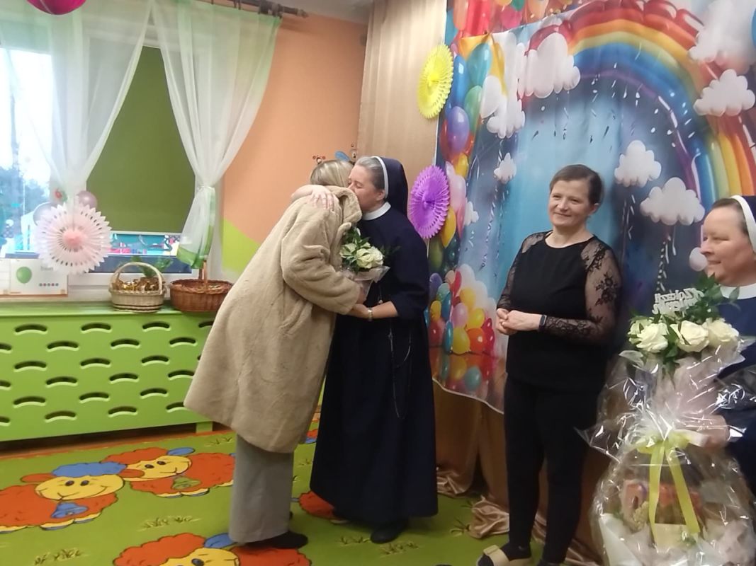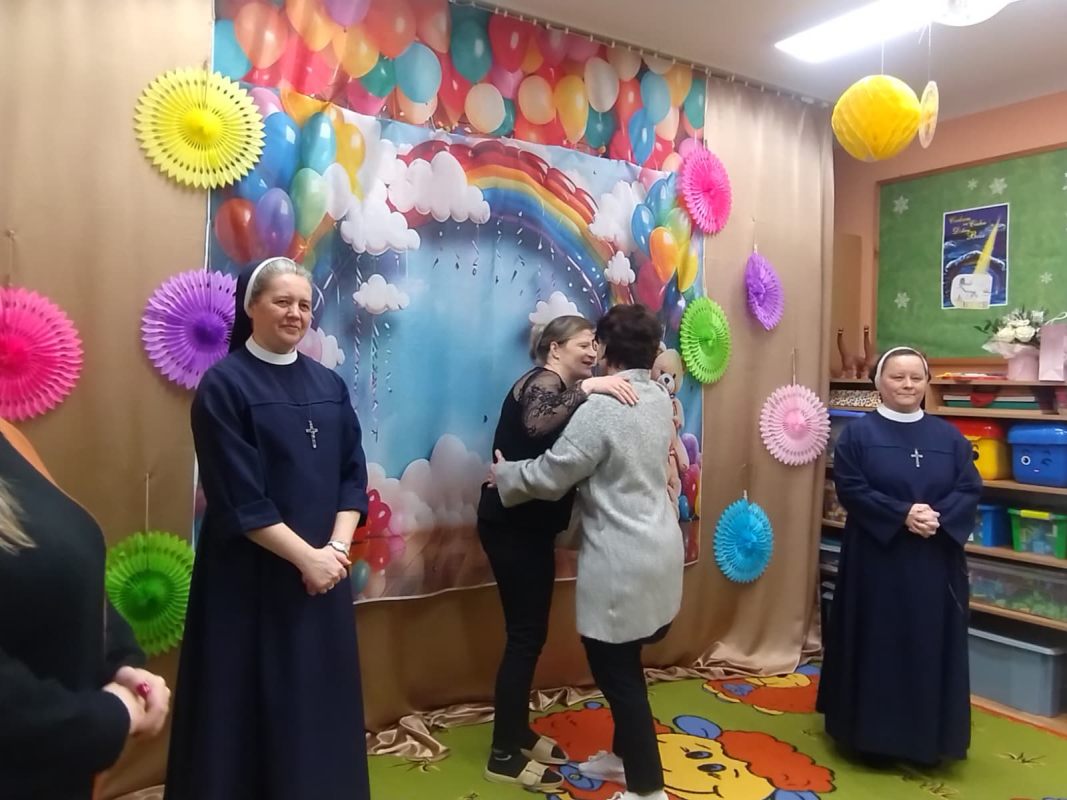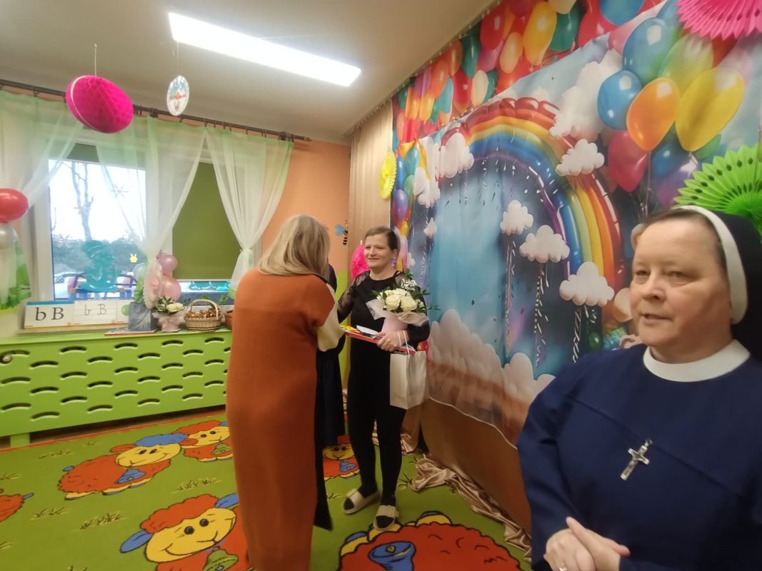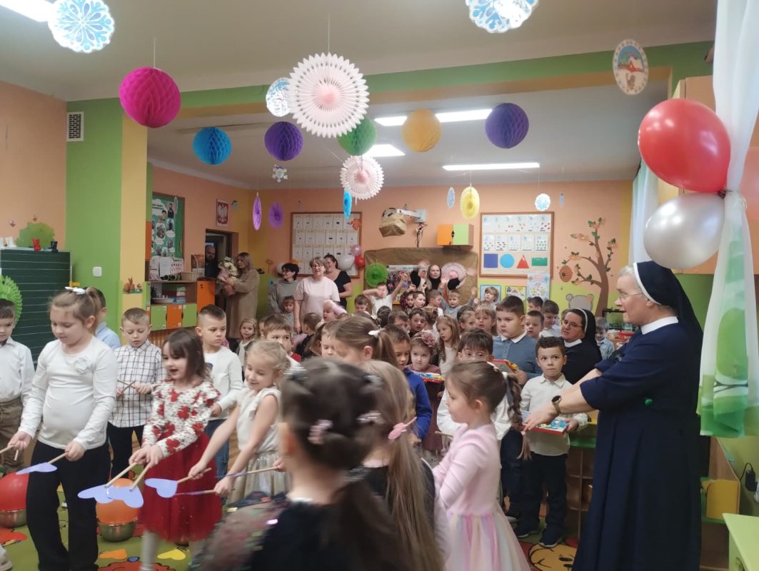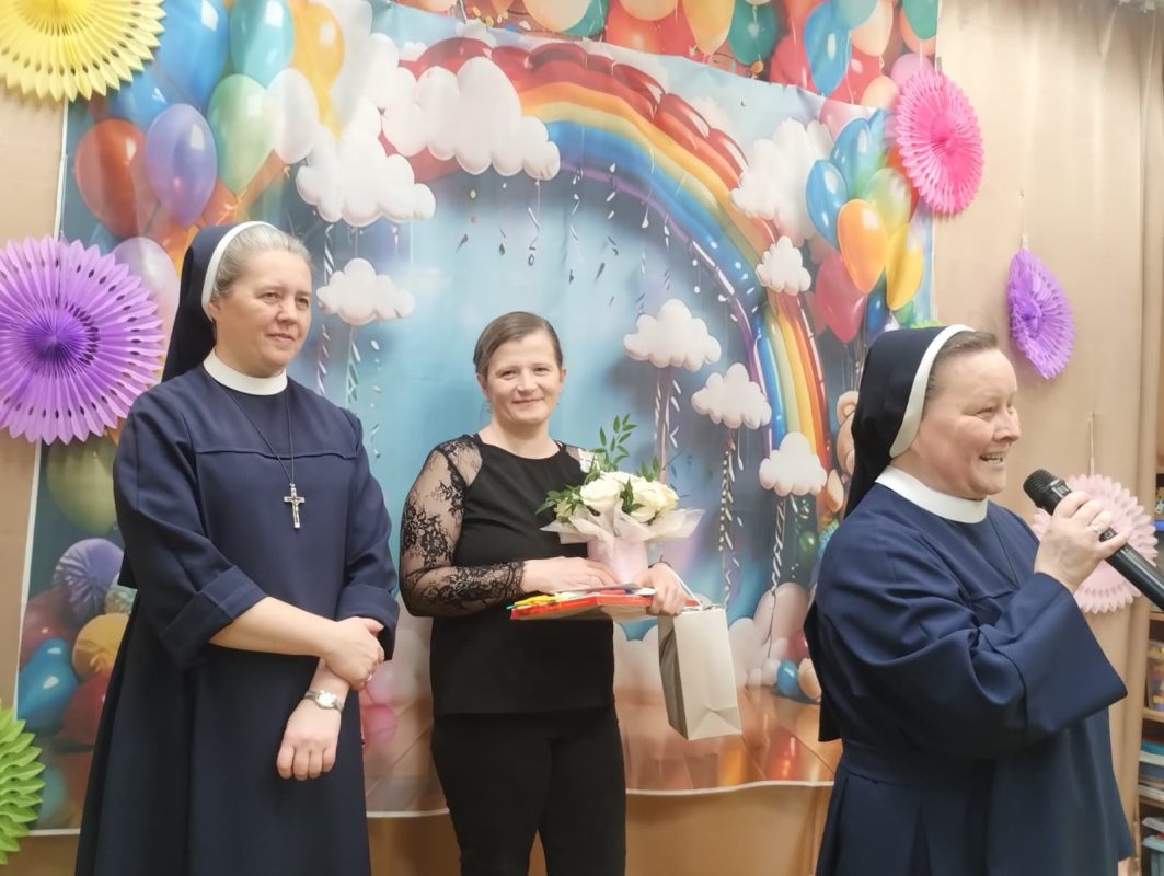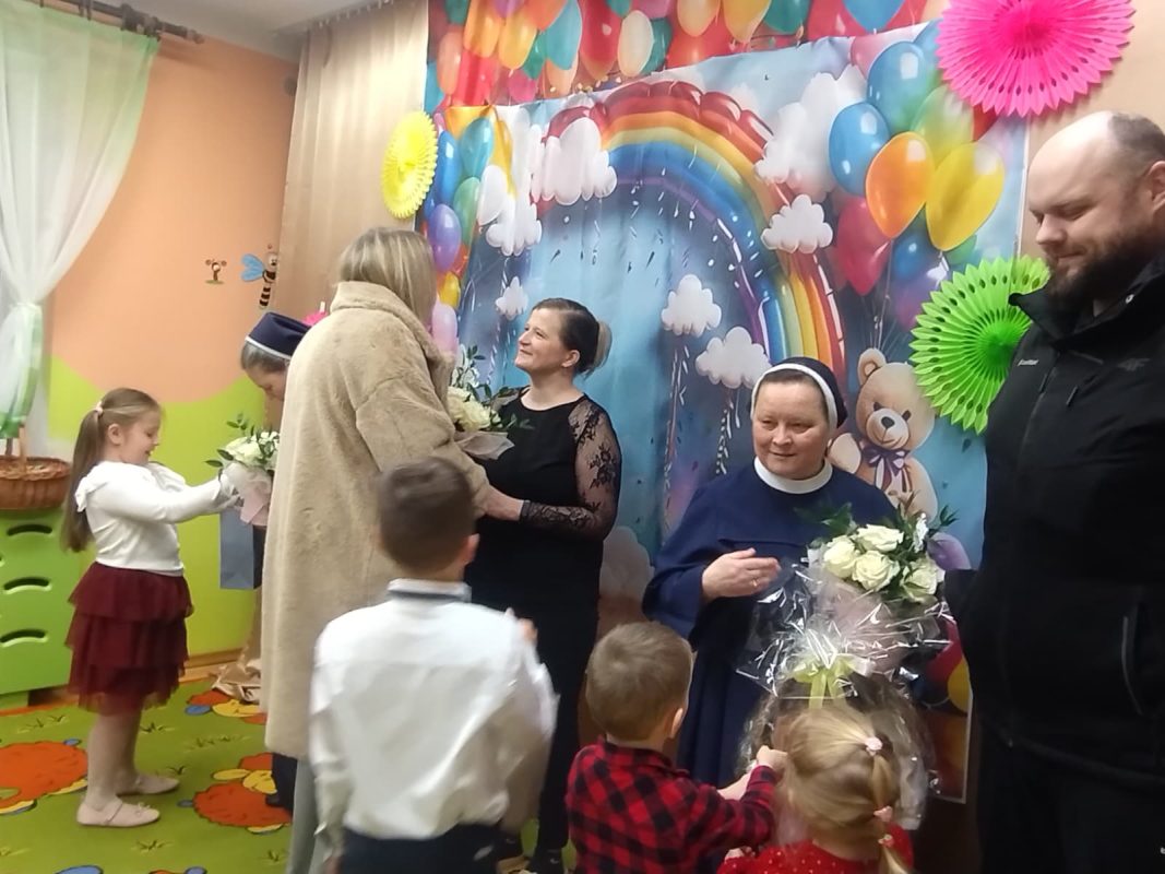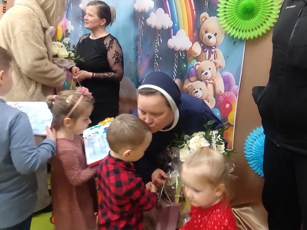 W naszej ochronce przeżywaliśmy radosny dzień – imieniny Siostry Danuty, Siostry Agnieszki i Pani Dorotki. Była to piękna okazja, aby wyrazić wdzięczność za ich codzienną obecność, serce wkładane w wychowanie dzieci oraz cierpliwą troskę o każdego malucha. Dzieci z wielkim zaangażowaniem przygotowały dla Solenizantek niespodzianki – własnoręcznie wykonane laurki, kwiaty oraz krótką część artystyczną. Nie zabrakło serdecznych życzeń, uśmiechów i wspólnego śpiewu. Atmosfera była pełna ciepła, radości i rodzinnej bliskości. Otaczamy Siostrę Danutę, Siostrę Agnieszkę i Panią Dorotkę modlitwą, prosząc dla Nich o Boże błogosławieństwo, potrzebne siły oraz nieustanną radość w służbie Bogu i ludziom. Niech dobry Bóg obdarza Je obfitością łask, a Matka Najświętsza otacza swoją opieką każdego dnia.
