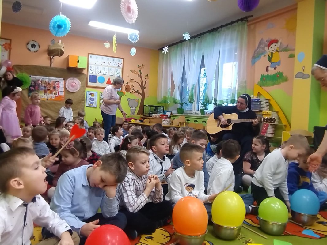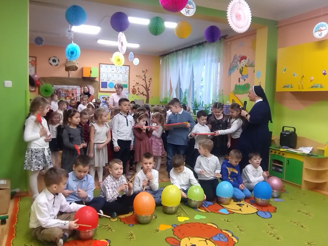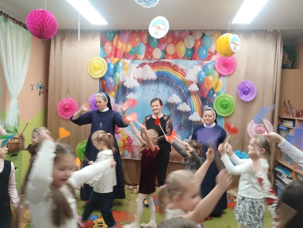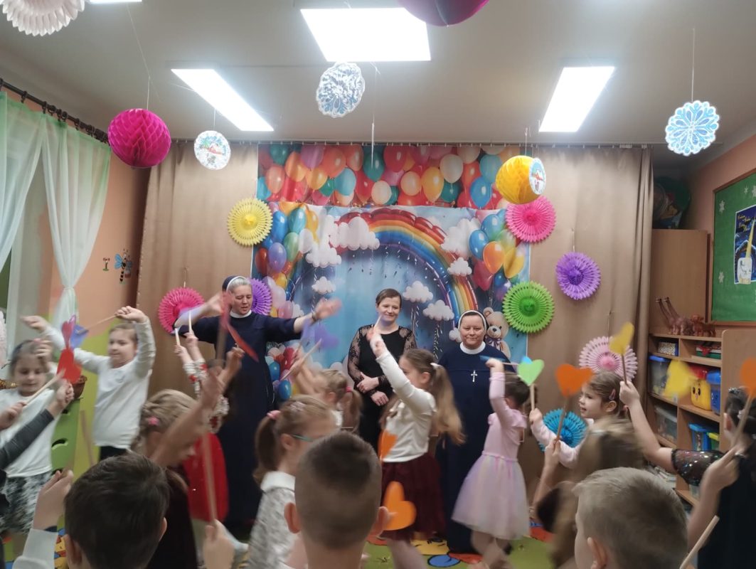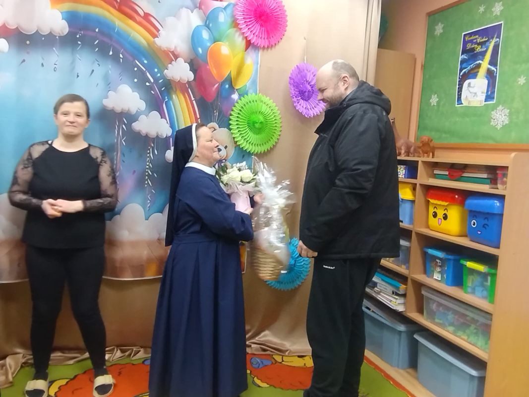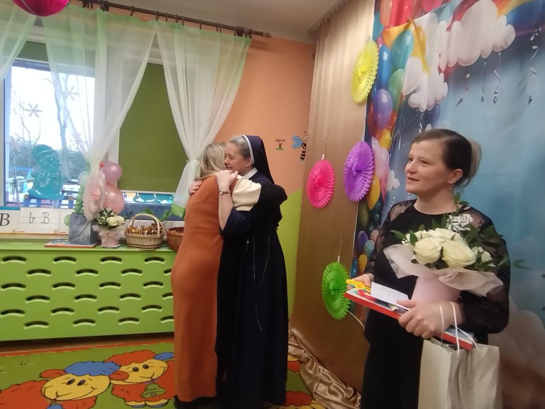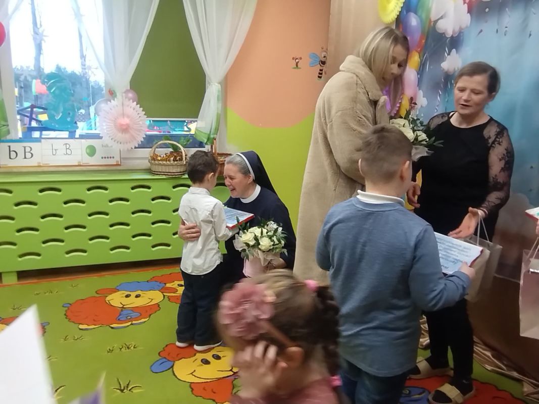 W naszej ochronce przeżywaliśmy radosny dzień – imieniny Siostry Danuty, Siostry Agnieszki i Pani Dorotki. Była to piękna okazja, aby wyrazić wdzięczność za ich codzienną obecność, serce wkładane w wychowanie dzieci oraz cierpliwą troskę o każdego malucha. Dzieci z wielkim zaangażowaniem przygotowały dla Solenizantek niespodzianki – własnoręcznie wykonane laurki, kwiaty oraz krótką część artystyczną. Nie zabrakło serdecznych życzeń, uśmiechów i wspólnego śpiewu. Atmosfera była pełna ciepła, radości i rodzinnej bliskości. Otaczamy Siostrę Danutę, Siostrę Agnieszkę i Panią Dorotkę modlitwą, prosząc dla Nich o Boże błogosławieństwo, potrzebne siły oraz nieustanną radość w służbie Bogu i ludziom. Niech dobry Bóg obdarza Je obfitością łask, a Matka Najświętsza otacza swoją opieką każdego dnia.
